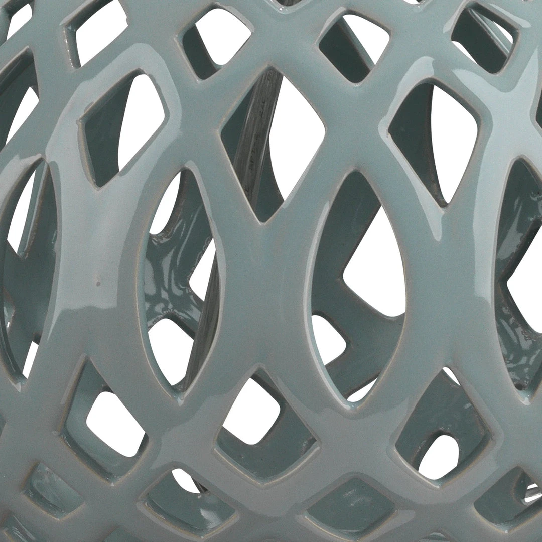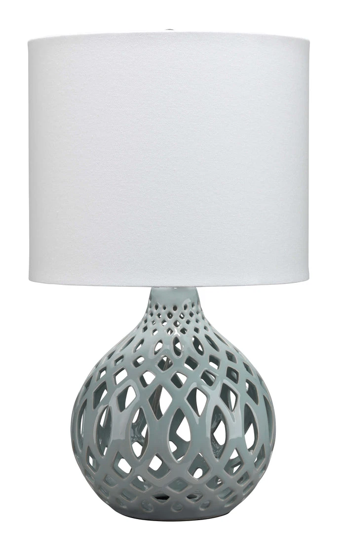 In a labyrinth of ceramic tracery, the Fretwork Table Lamp?ÇÖs hollow center breathes new life into the average lamp silhouette. The almost woven aesthetic embraces the absence of a weighted center and instead looks light and airy. Placed on a clear acrylic base and topped with a white linen shade, all the finer details of this lamp aim to speak to its visually weightless nature. Available in three colors, this lamp is perfect for any environment in need of a coastal breeze.
