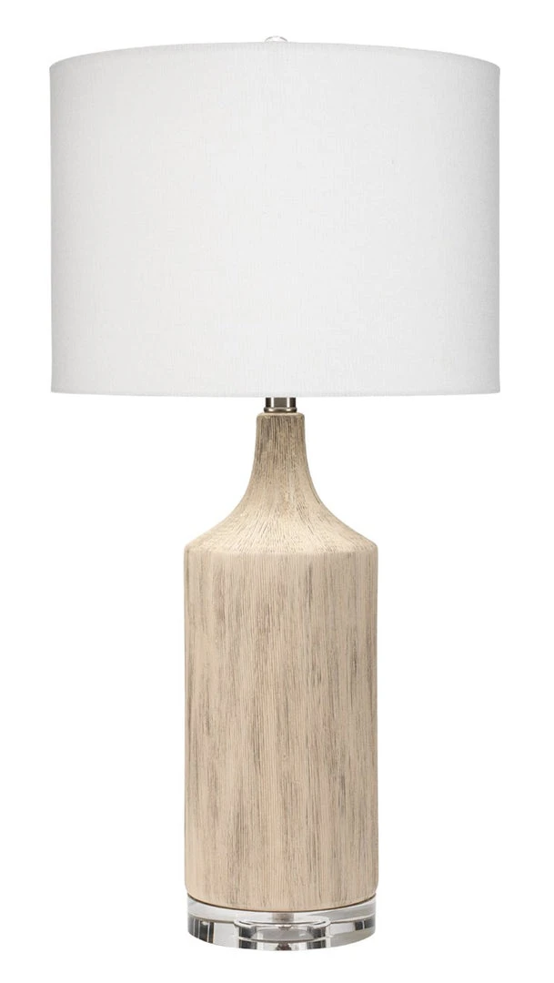 This clean ceramic lamp with a beautiful thick acrylic base is a modern but warm table lamp that fits a light clean simple space.