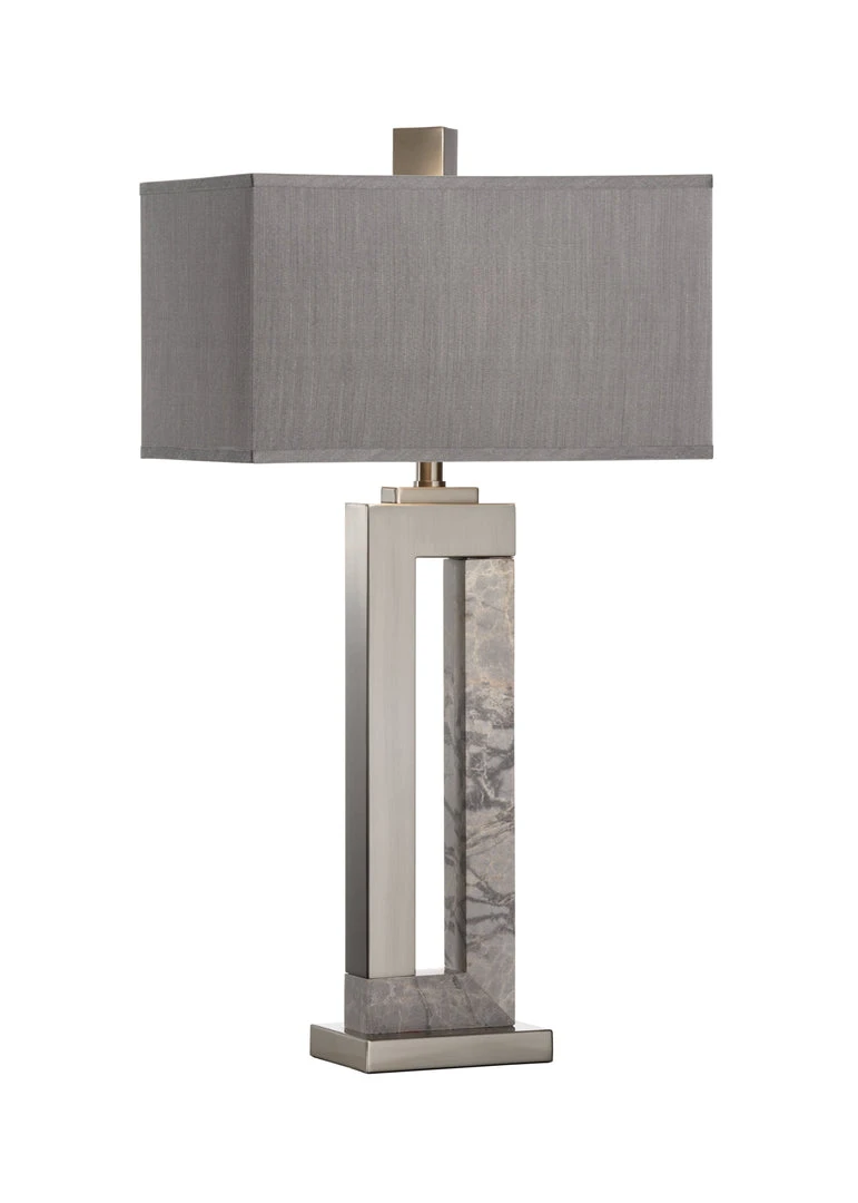 Grey Marble And Brushed Nickel Lamp With Brushed Nickel Mounting