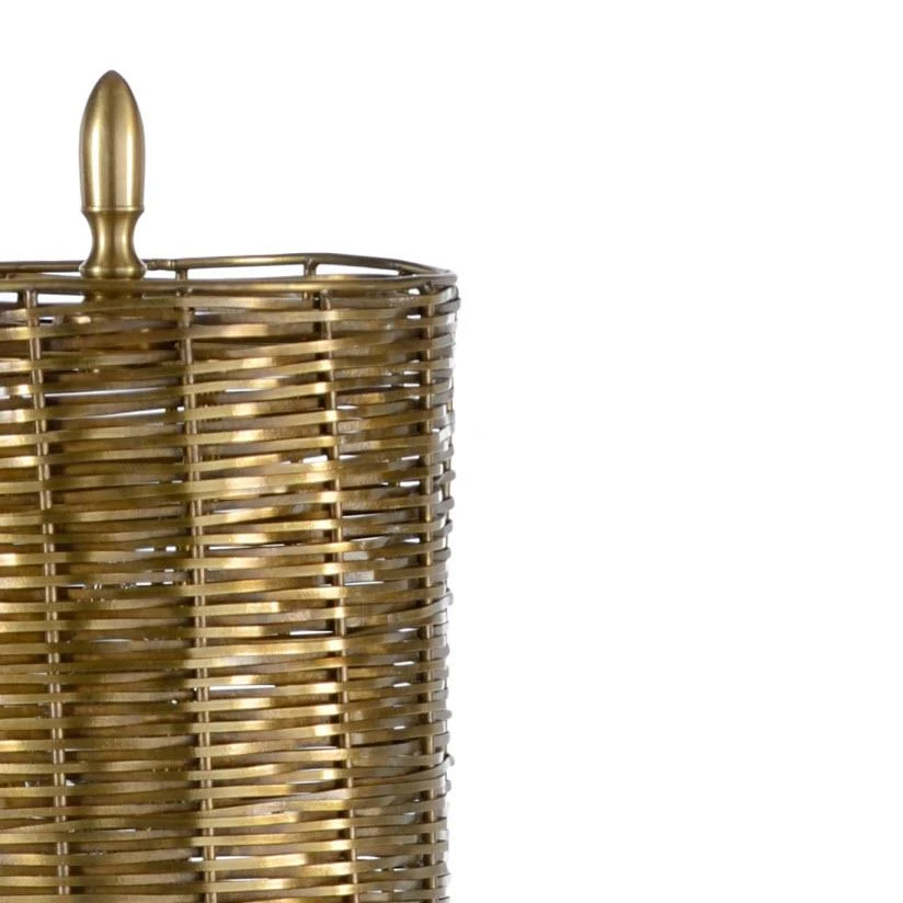 Tarnished Brass On Metal-Marble Base Woven Metal Shade