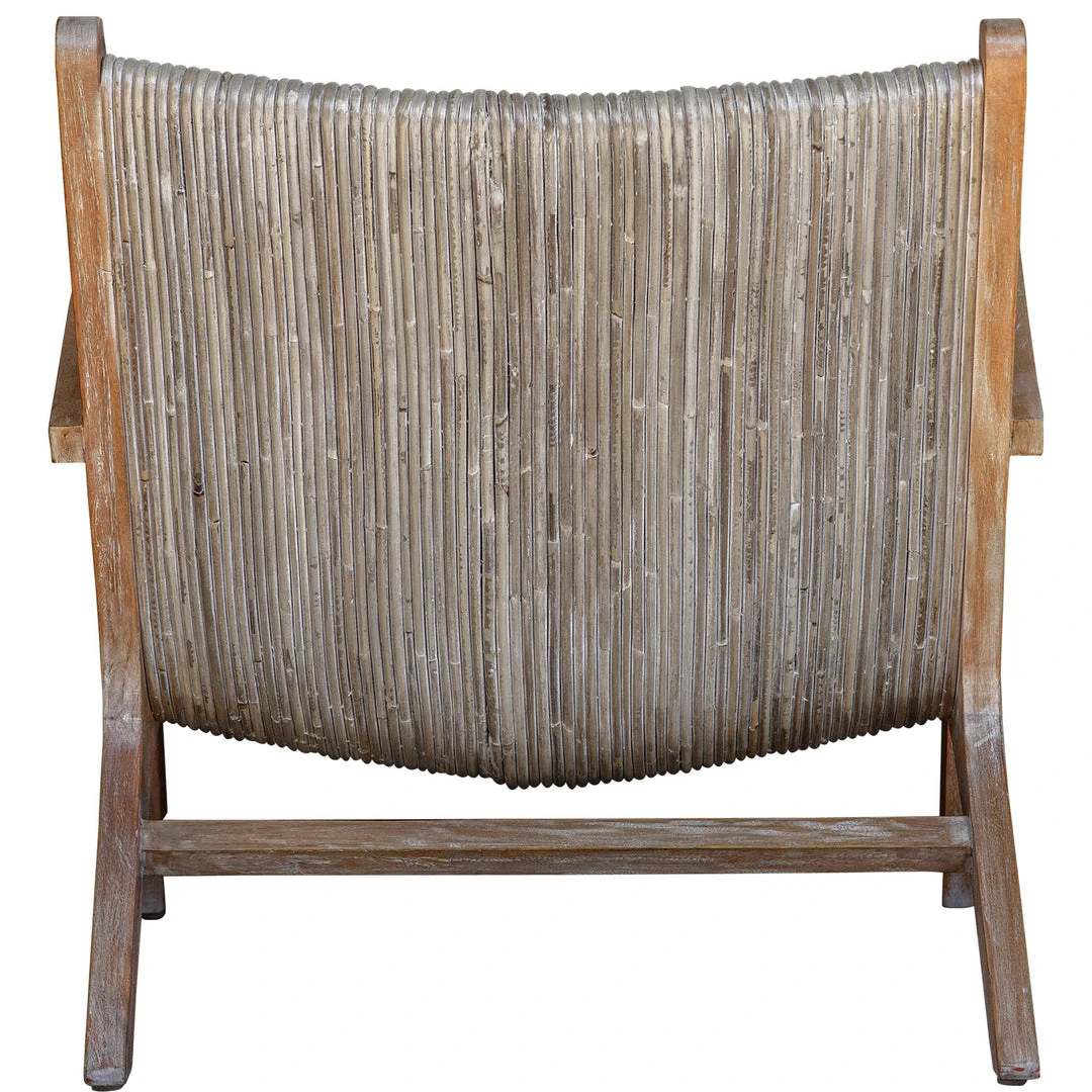 Inspired By Casual Coastal Style, This Accent Chair Features A Solid Mango Wood Frame In A Natural Finish With Light Whitewashed Details. The Seat And Back Are Made With Natural Woven Rattan In Neutral Beige And Light Gray Tones. Seat Height Is 16″.