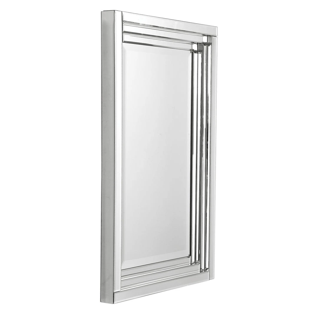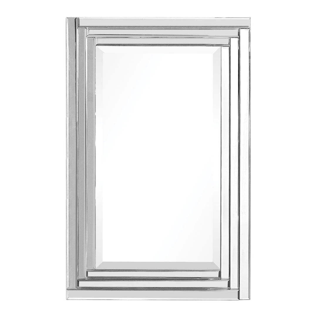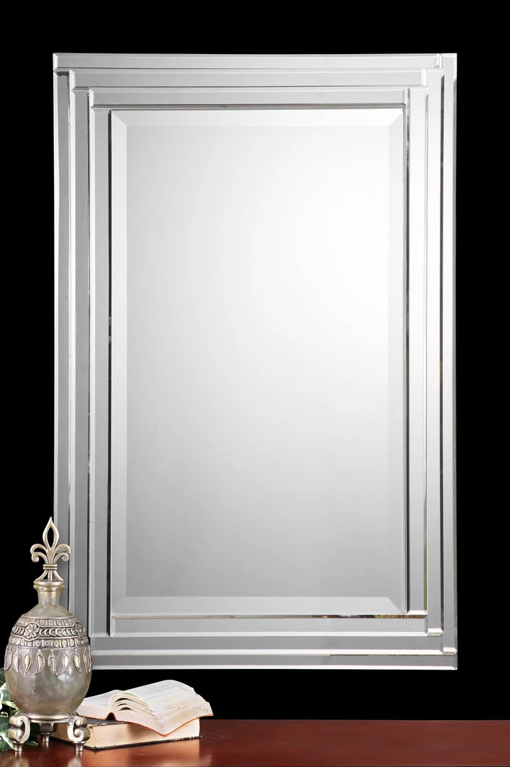 This Frameless Mirror Is Constructed Of Stepped, Bevel Mirrors With Polished Edges For A Smooth, Clean Finish. Center Mirror Has A Generous 1 1/4″ Bevel. May Be Hung Either Horizontal Or Vertical.