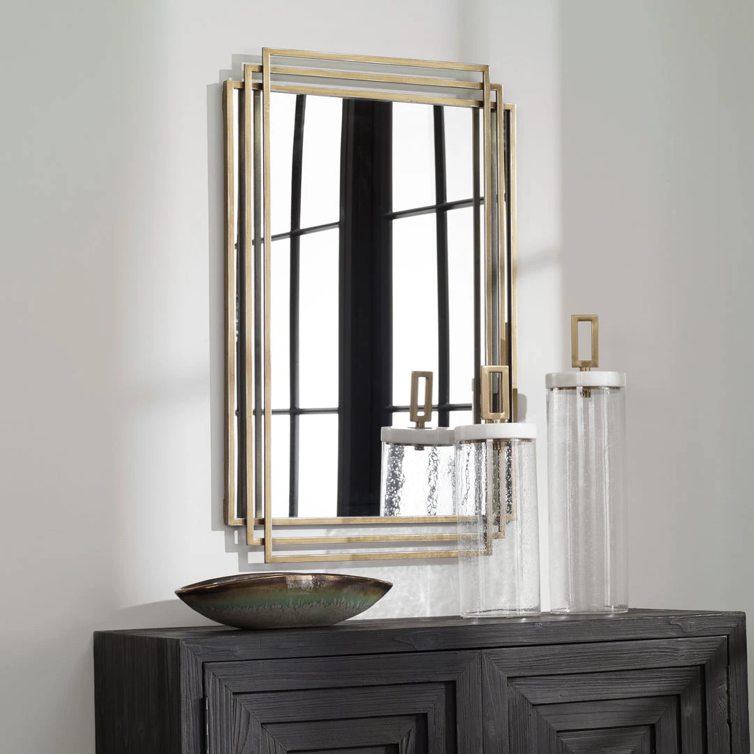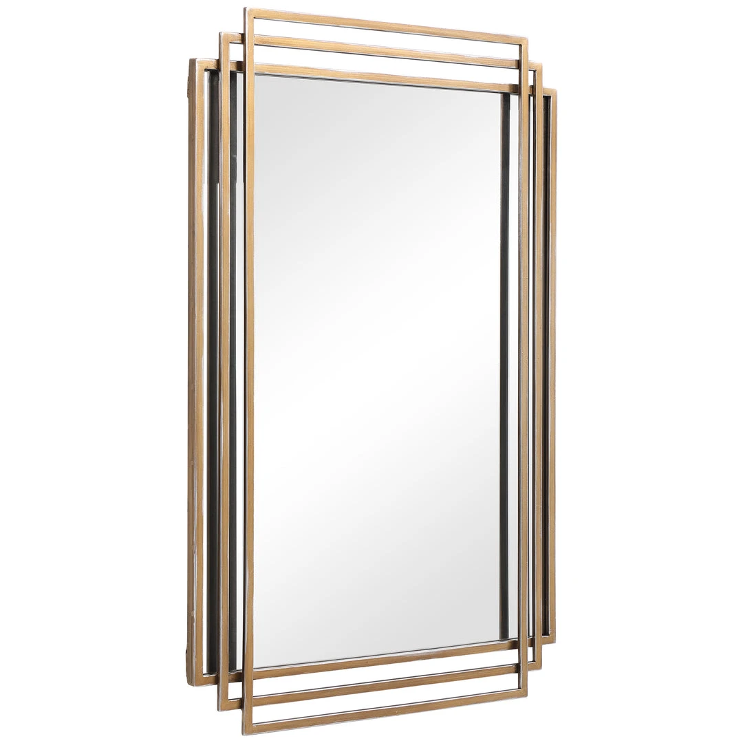 Showcasing Elegant Lines And A Timeless Style, This Mirror Features An Overlapping Solid Iron Frame Finished In A Sophisticated Distressed Brushed Gold With Silver Highlights. May Be Hung Horizontal Or Vertical.
