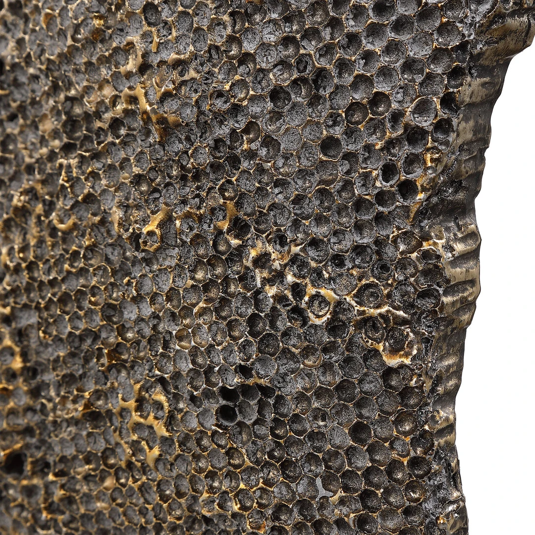 Inspired By A Natural Honeycomb, This Sculpture Showcases Intricately Carved Details Finished In Antique Gold And Accented By A Crystal Foot.