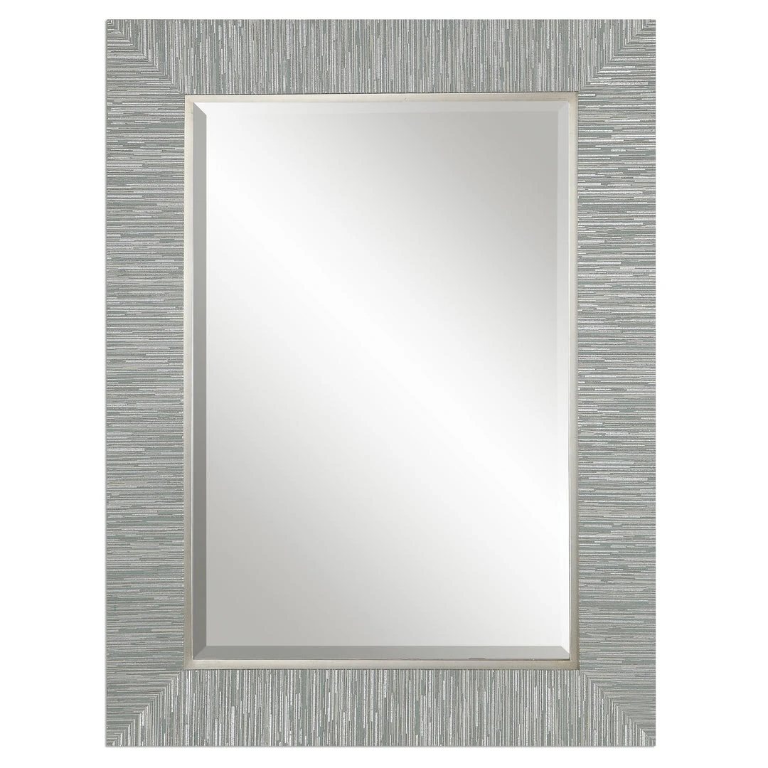 Solid Wood Frame With A Blue-gray And Silver Striped, Textured Wrap Finish Accented With A Silver Leaf Inner Lip. Mirror Is Beveled. May Be Hung Horizontal Or Vertical.