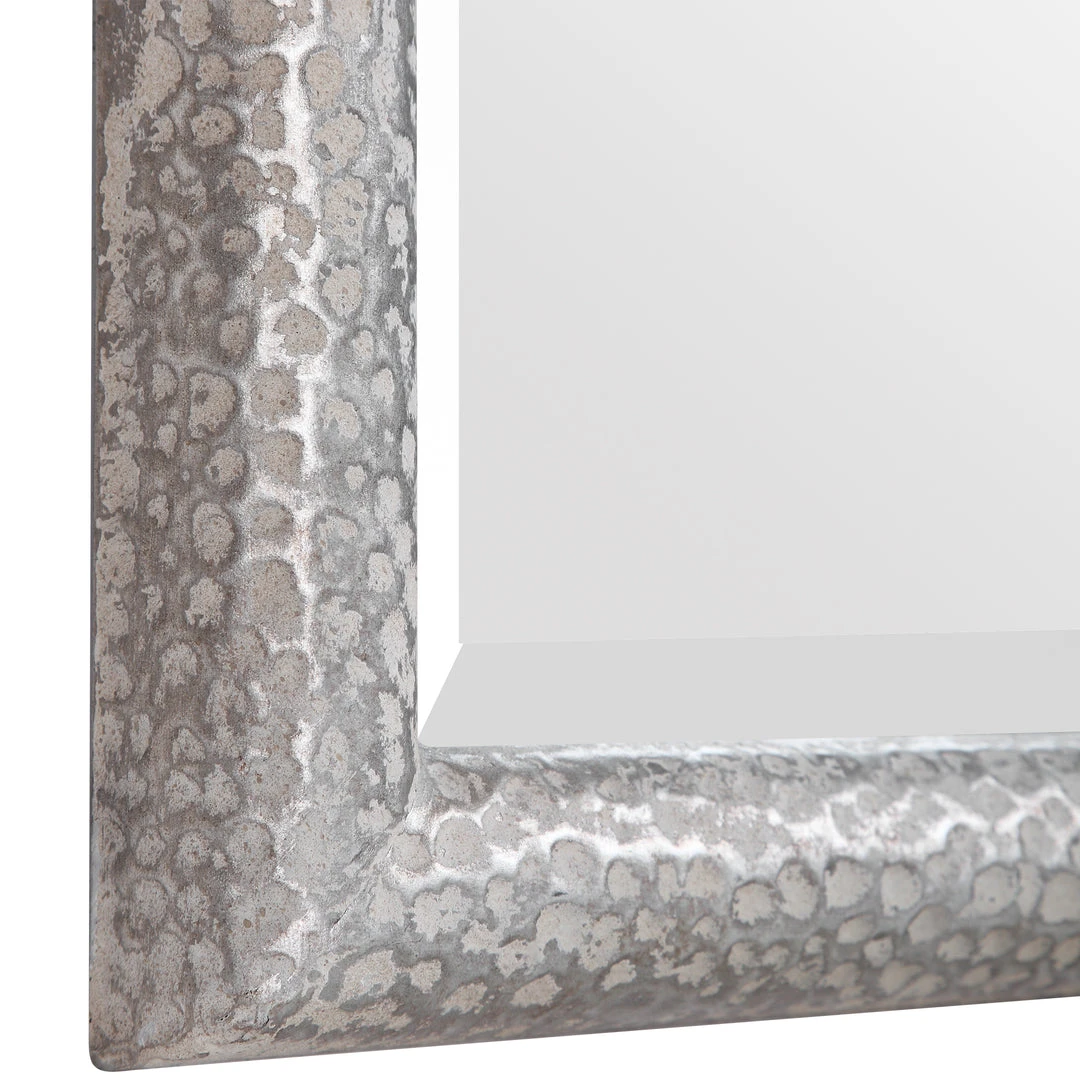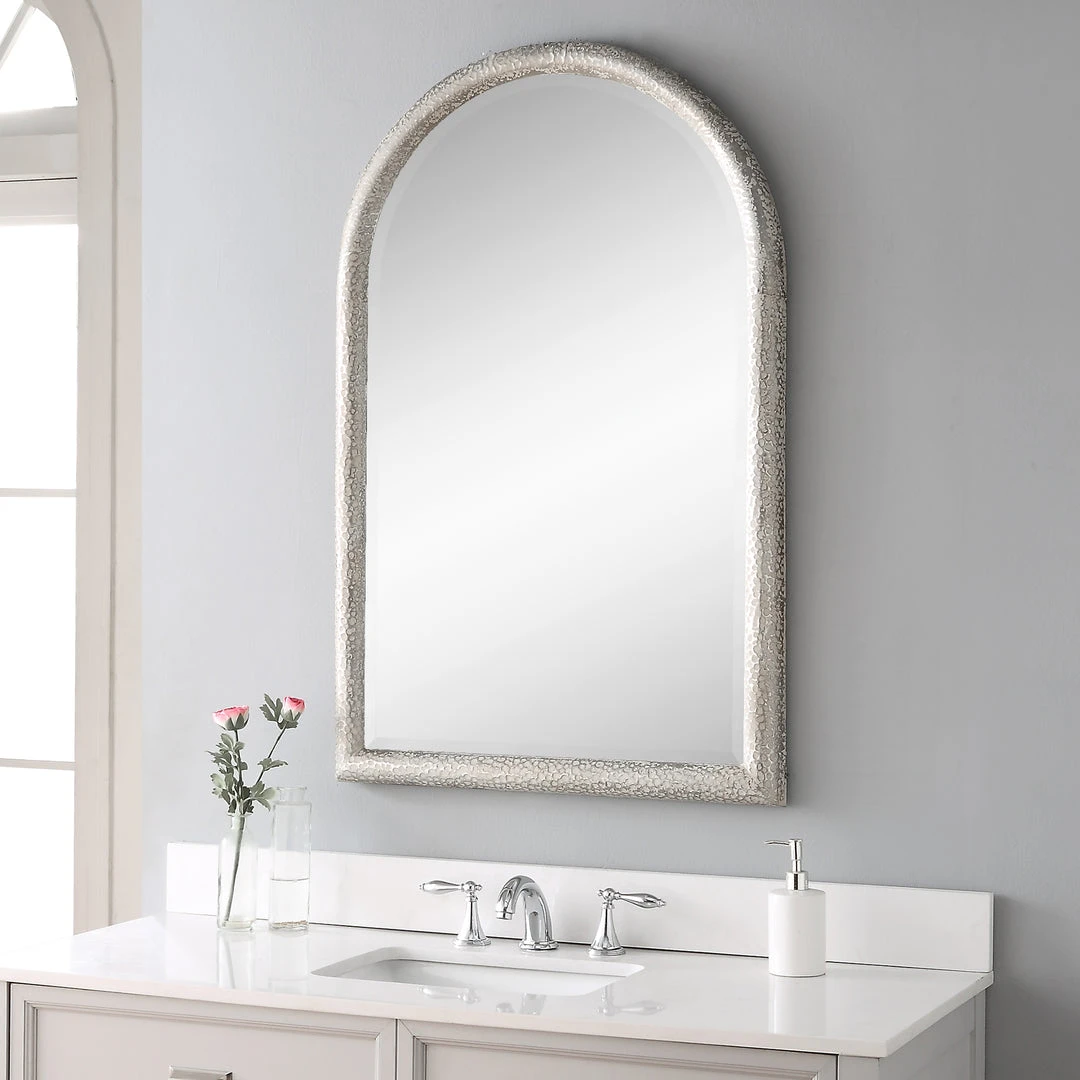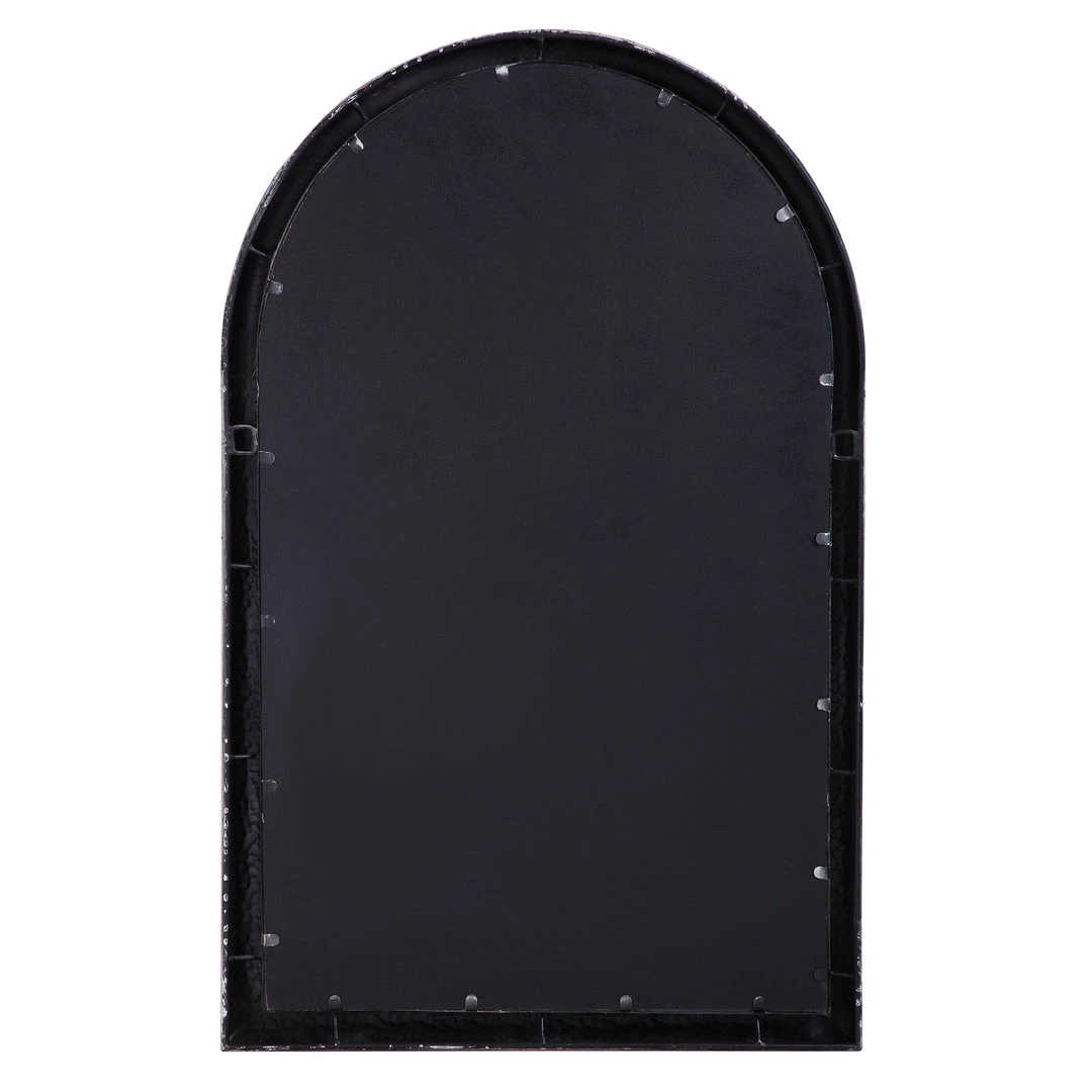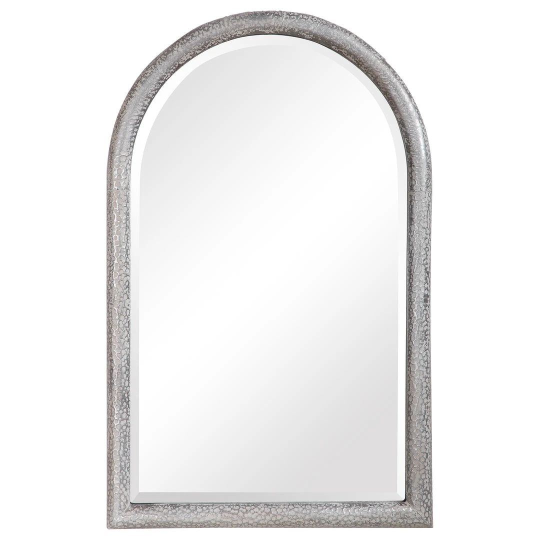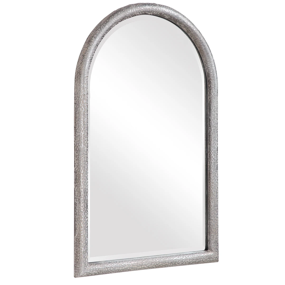 Arch Mirror Features A Forged Iron Frame With Noticeable Texture Finished In Aged Gray With Distressing And Mottled Silver Highlights. Mirror Has A Generous 1 1/4″ Bevel.