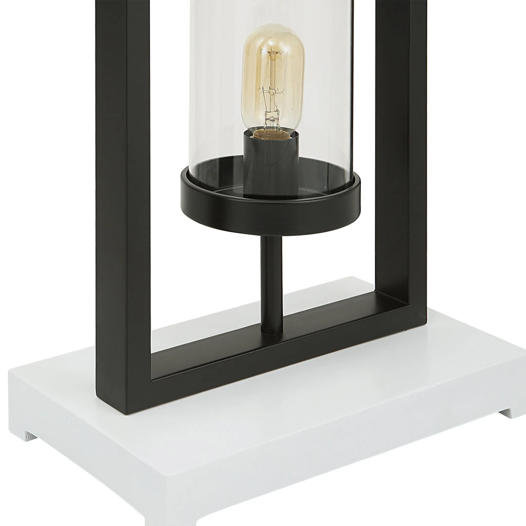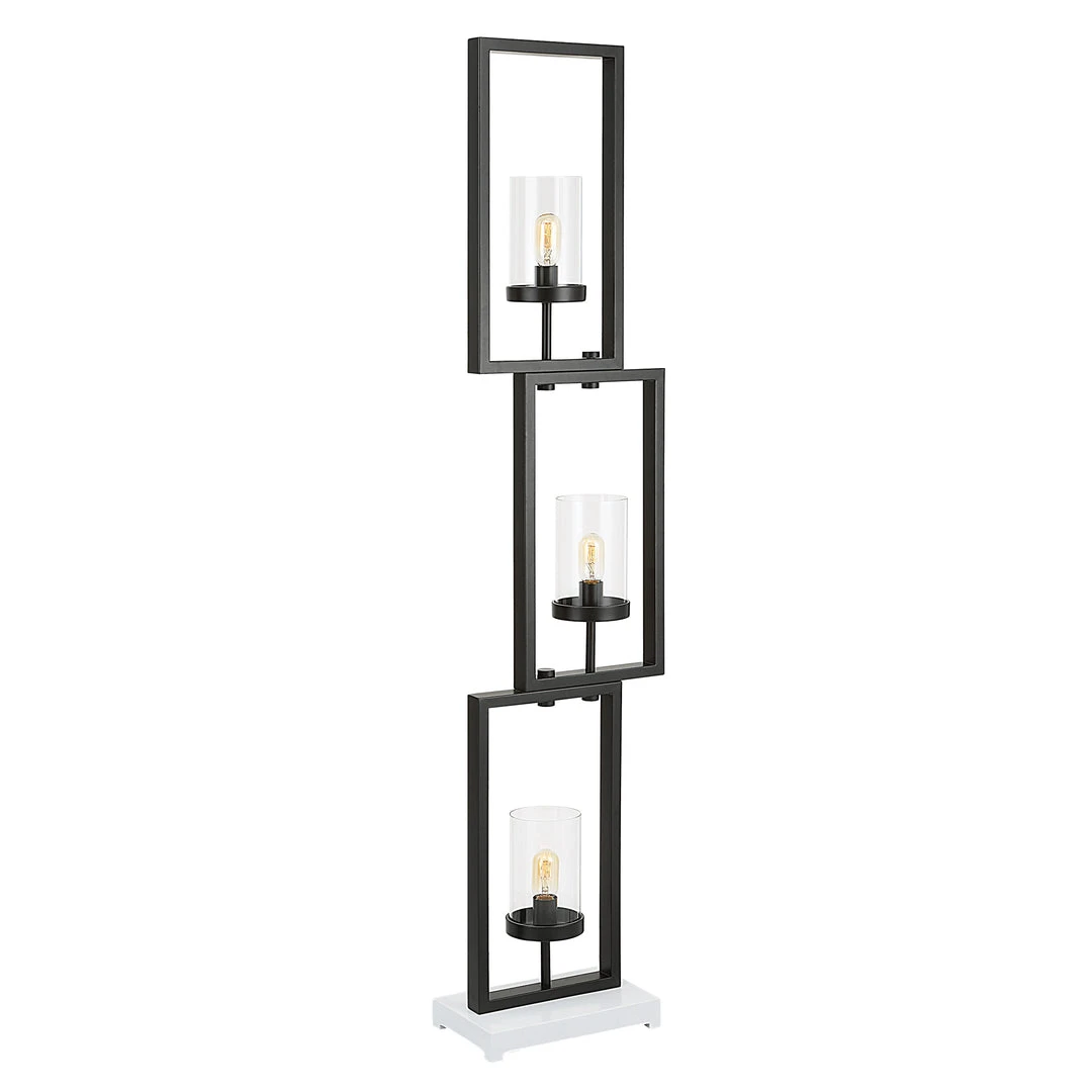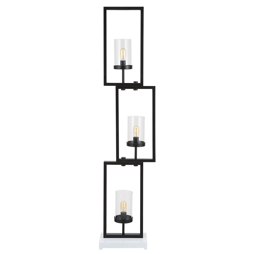 Clean, Geometric Lines Open The Visual Space Around This Modern Floor Lamp. Staggered Steel Rectangles Finished In Satin Black Are Each Accented By A Clear Glass Globe. Three 40-watt T14, Amber Colored, Antique Style Bulbs Are Included.
