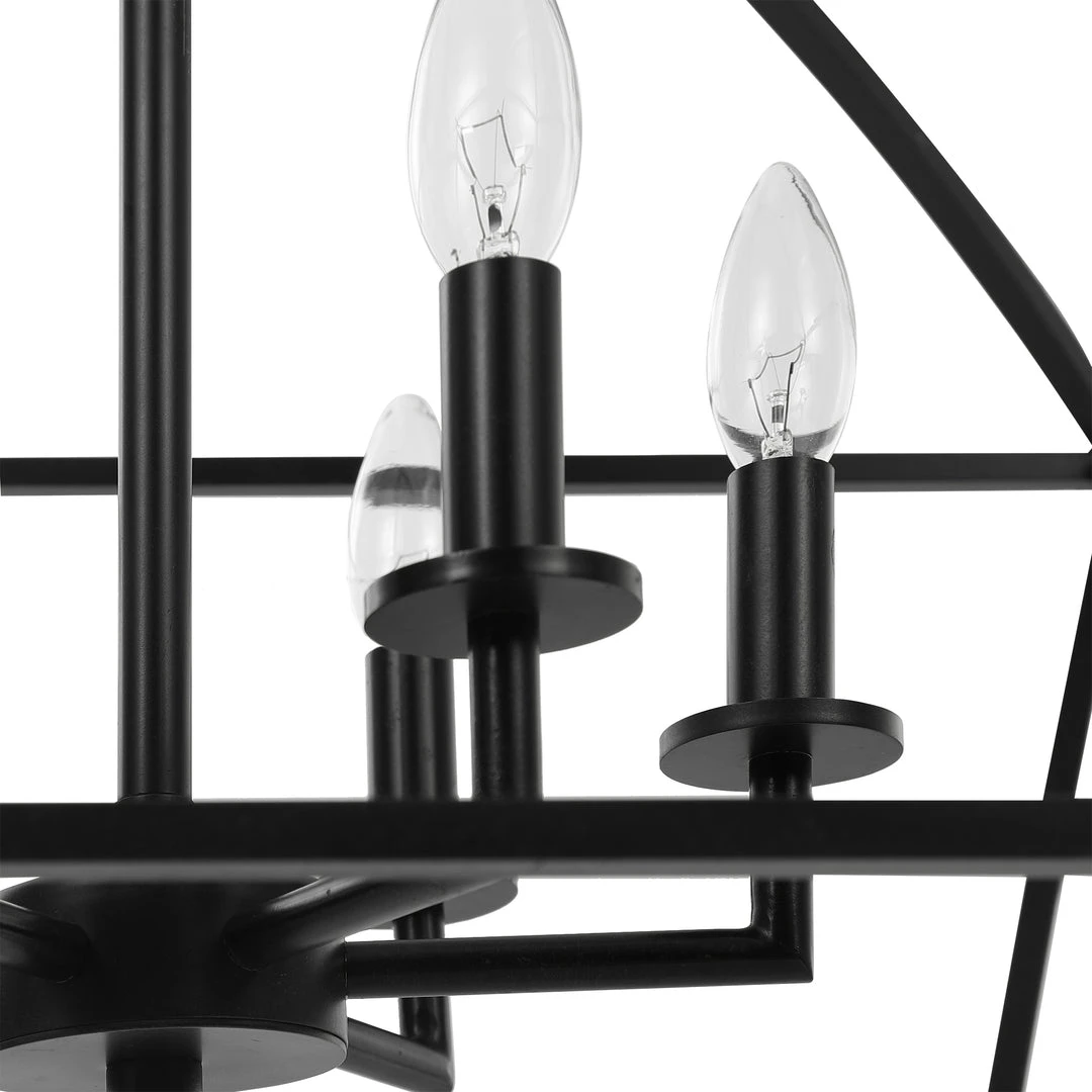 Simple Clean Open Frame Lines Are The Focus Of This Vintage Farm Industrial 6 Lt. Pendant. The Deep Dark Weathered Bronze Finish Is Modernized With A Matte Luster. 6-60 Watt Max, Candelabra Sockets. Supplied With 15 Wire, 3-12″ Stems And 1-6″ Stem For Adjustable Installation.