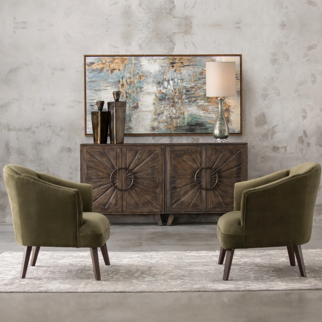This Barrel Back Style Accent Chair Offers A Cozy Feel, Featuring A Soft Olive Toned Polyester Velvet, Finished With A Welt Trim And Tapered Birch Legs In Dark Walnut. Seat Height Is 18″.
