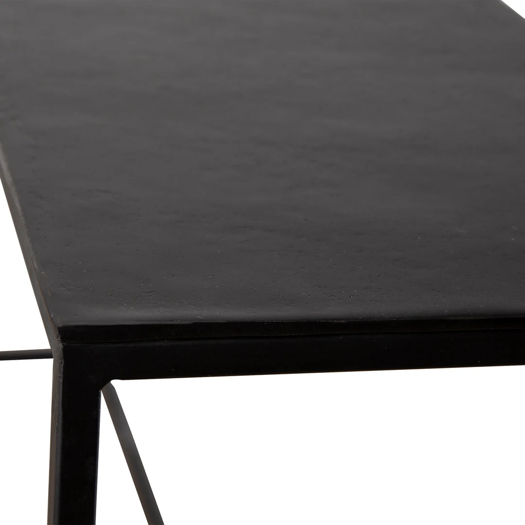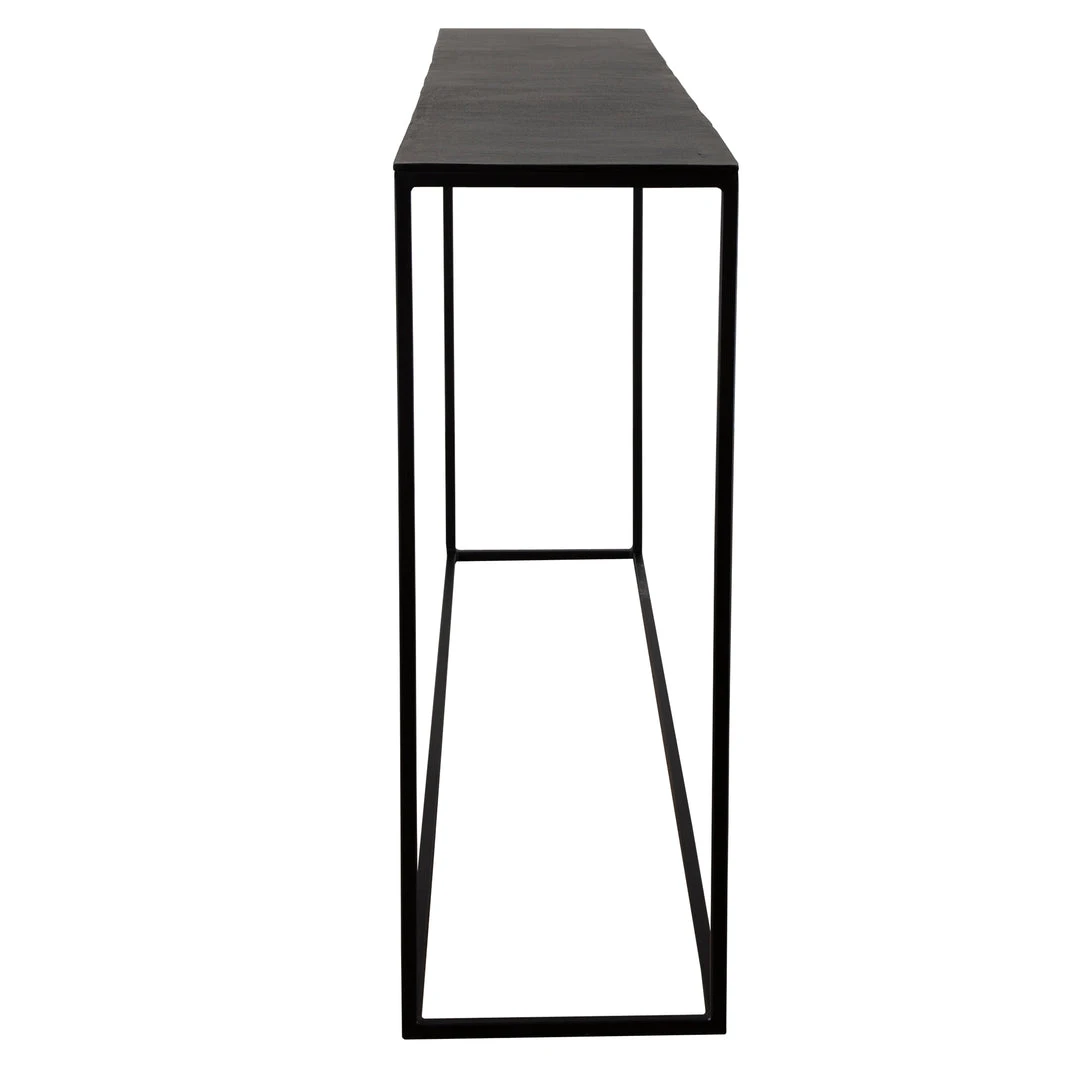 Simplistic Industrial Style Console Table, Constructed In An Aged Black Iron Featuring A Cast Textured Aluminum Slab Top Finished In A Plated Antique Bronze.