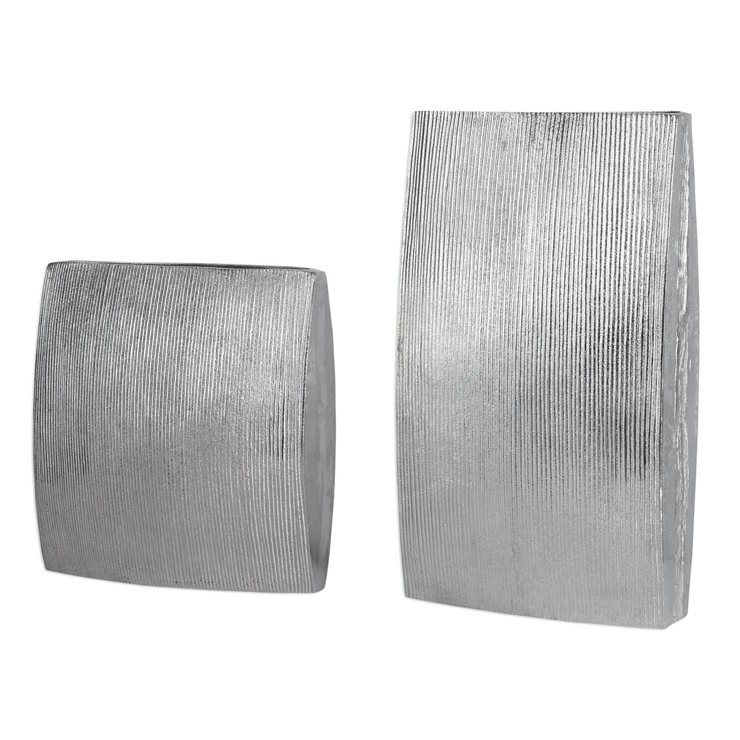 Cast Of Aluminum, These Handcrafted Vases Feature A Ribbed, Polished Nickel Finish. Sizes: Sm-8x8x3, Lg-7x12x3