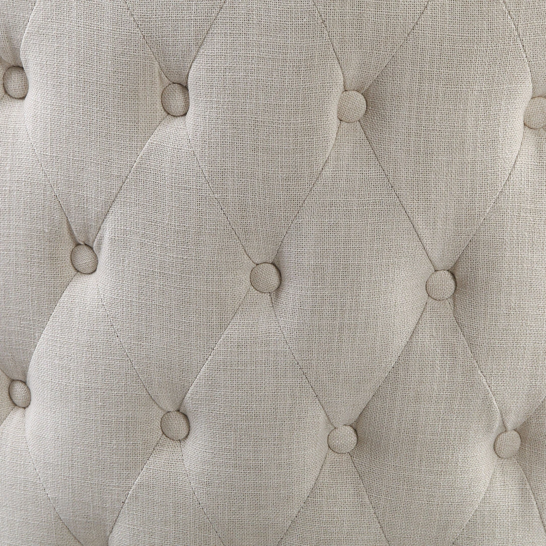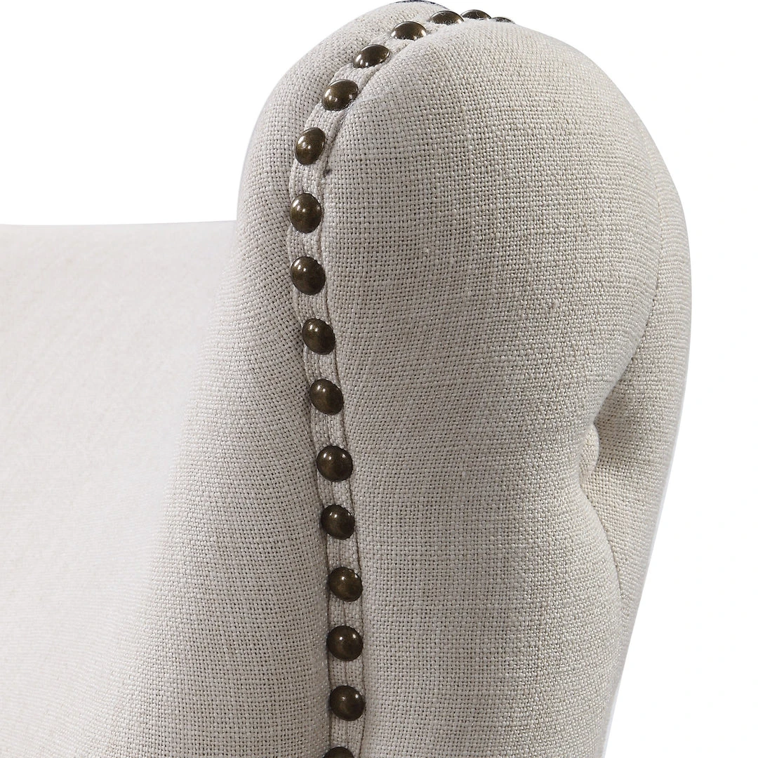Add Classic Elegance To A Space With This Wingback Lounge Chair. Covered In A Cream Linen Blend Fabric, Complete With A Button Tufted Exterior And Trimmed With Antique Bronze Finished Nail Heads. The Accent Chair Is Set On Oak Finished Dowel Legs With A Lightly Applied Gray Wash, Showcasing The Natural Wood Grain. Seat Height Is 19″.