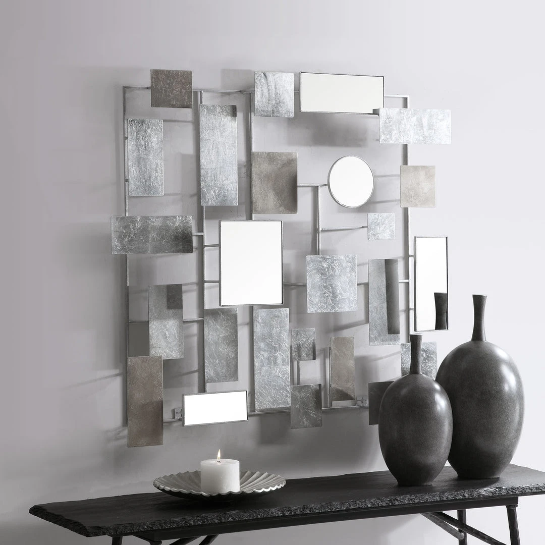 A Contemporary Mix Of Shapes And Layers, Featuring 3-dimensional Metal Panels Of Hand Applied Silver Leaf With Champagne Tones And Mirror Accents. May Be Hung Horizontal Or Vertical.