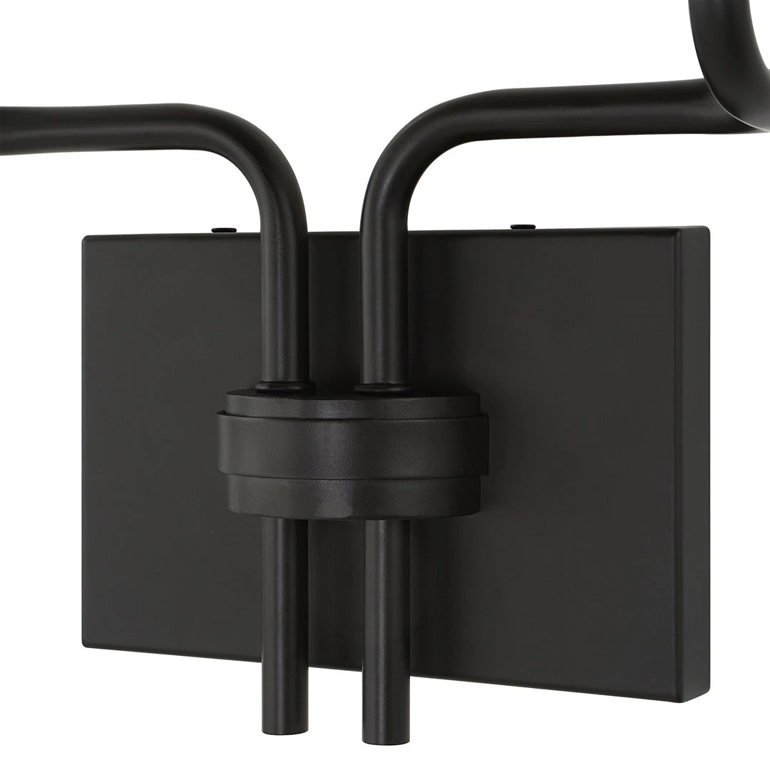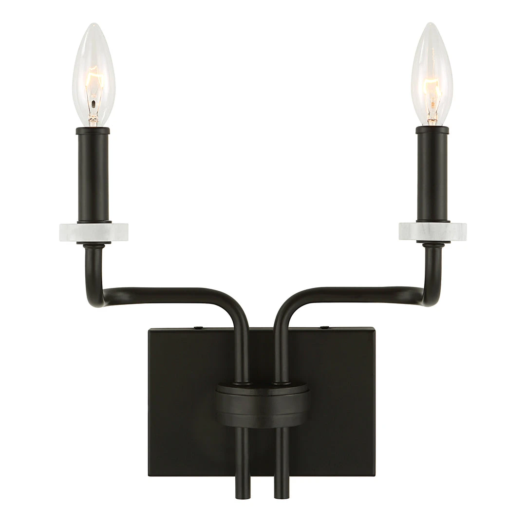 Modern & Sleek Softly Bent Lines Give This 2 Lt. Sconce A Dramatic Feel, Finished In A Deep Matte Black With Chic White Marble Disc Bobeches. With 2-60 Watt Max, Candelabra Sockets.