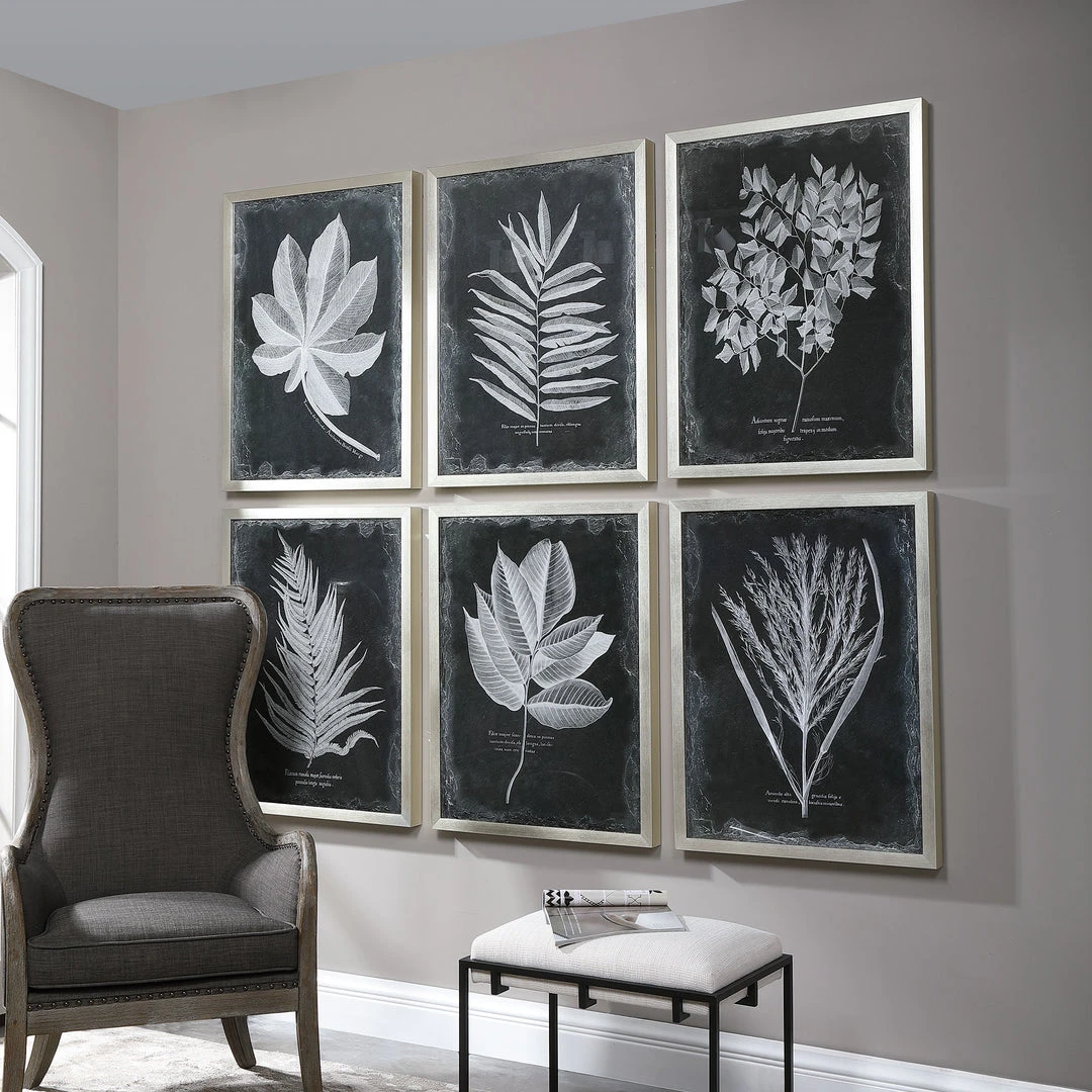 This Botanical Artwork Showcases Vintage Style With A Contemporary Edge. Each Striking Black And White Contrast Is Accented With A Petite, Champagne Silver Frame. Each Print Is Placed Under Protective Glass.