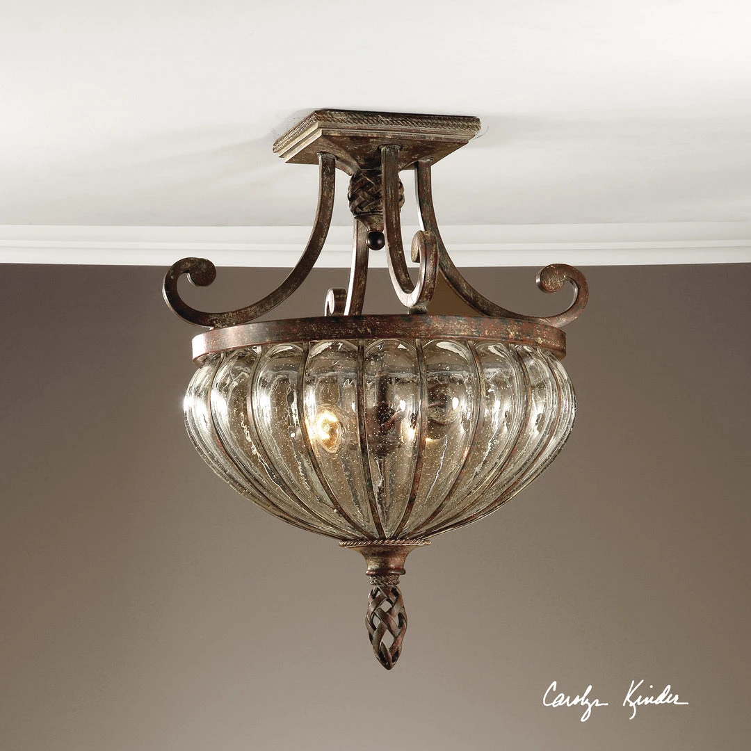 Mouth Blown Glass Banded And Structured With Iron, And Trimmed With Rope And Open Weave Touches, Then Finished With Clay Patinas To Make This Casually Elegant Lighting A Statement Piece Wherever Its Used.
