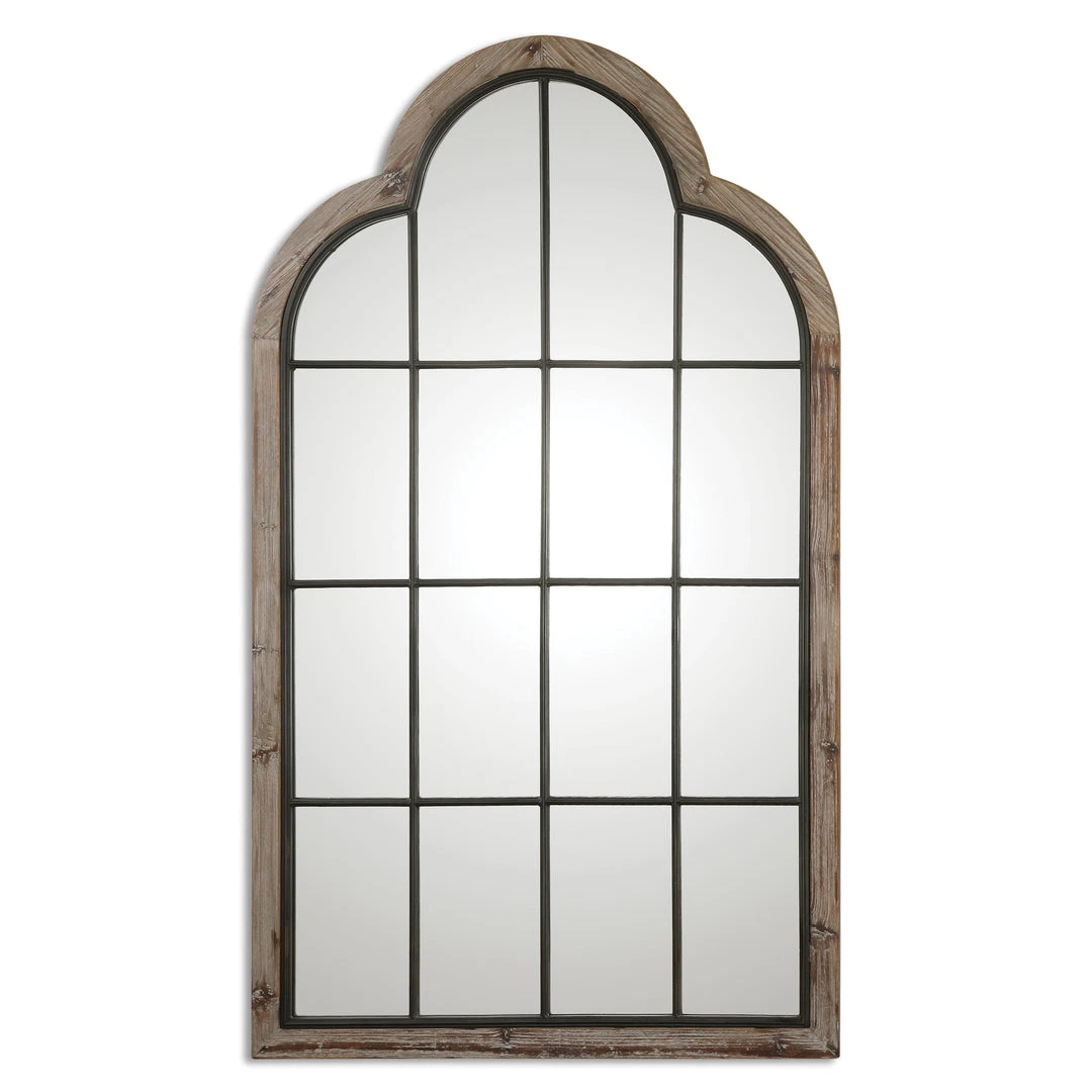 This Impressive, Oversized Arch Mirror Is Made Of Lightly Burnished, Reclaimed Pine With A Gray Wash And Wrought Iron Details.