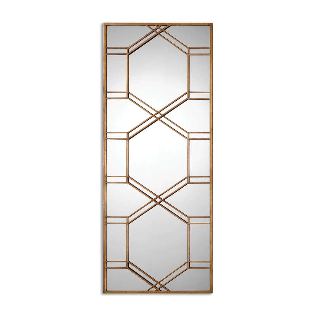 Decorative Mirror Featuring A Narrow, Metal Frame Finished In Heavily Antiqued, Gold Leaf. May Be Hung Horizontal Or Vertical.