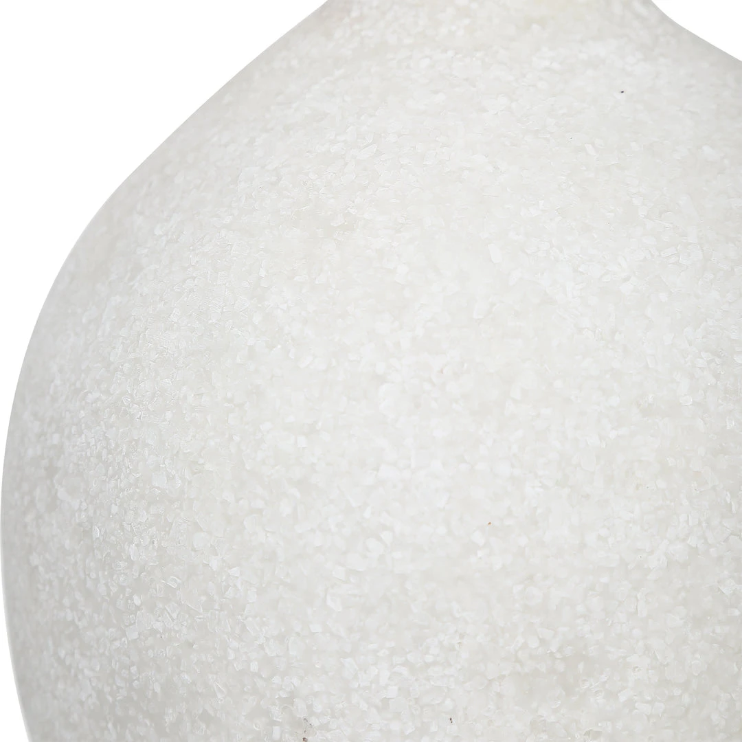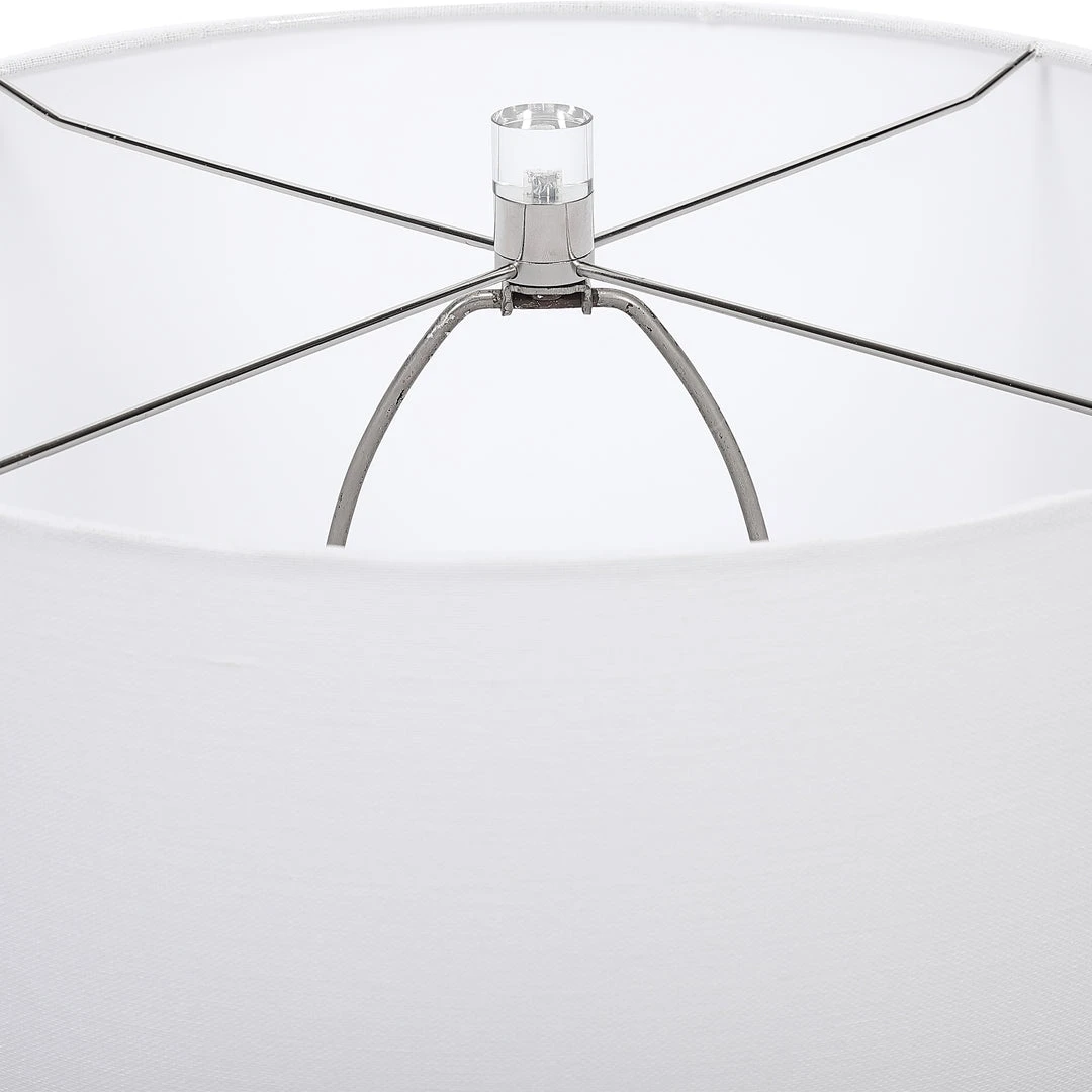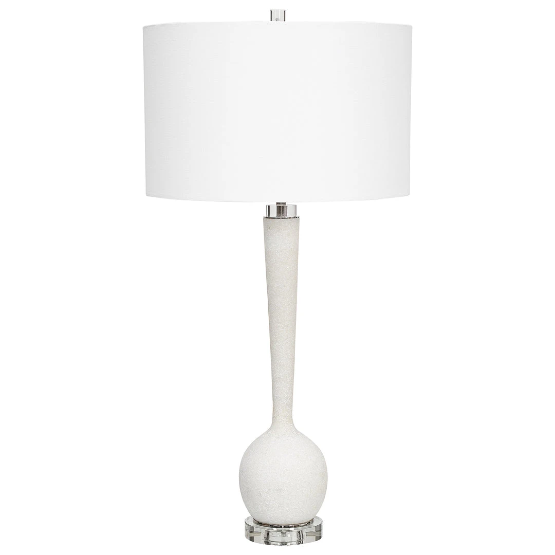 This Elegant Table Lamp Is Executed In A Rich Looking Material Made Of Granulated White Marble That Accurately Replicates The Look Of Thassos Marble, Accented By Thick Crystal Details. A White Hardback Drum Shade Completes The Lamp.