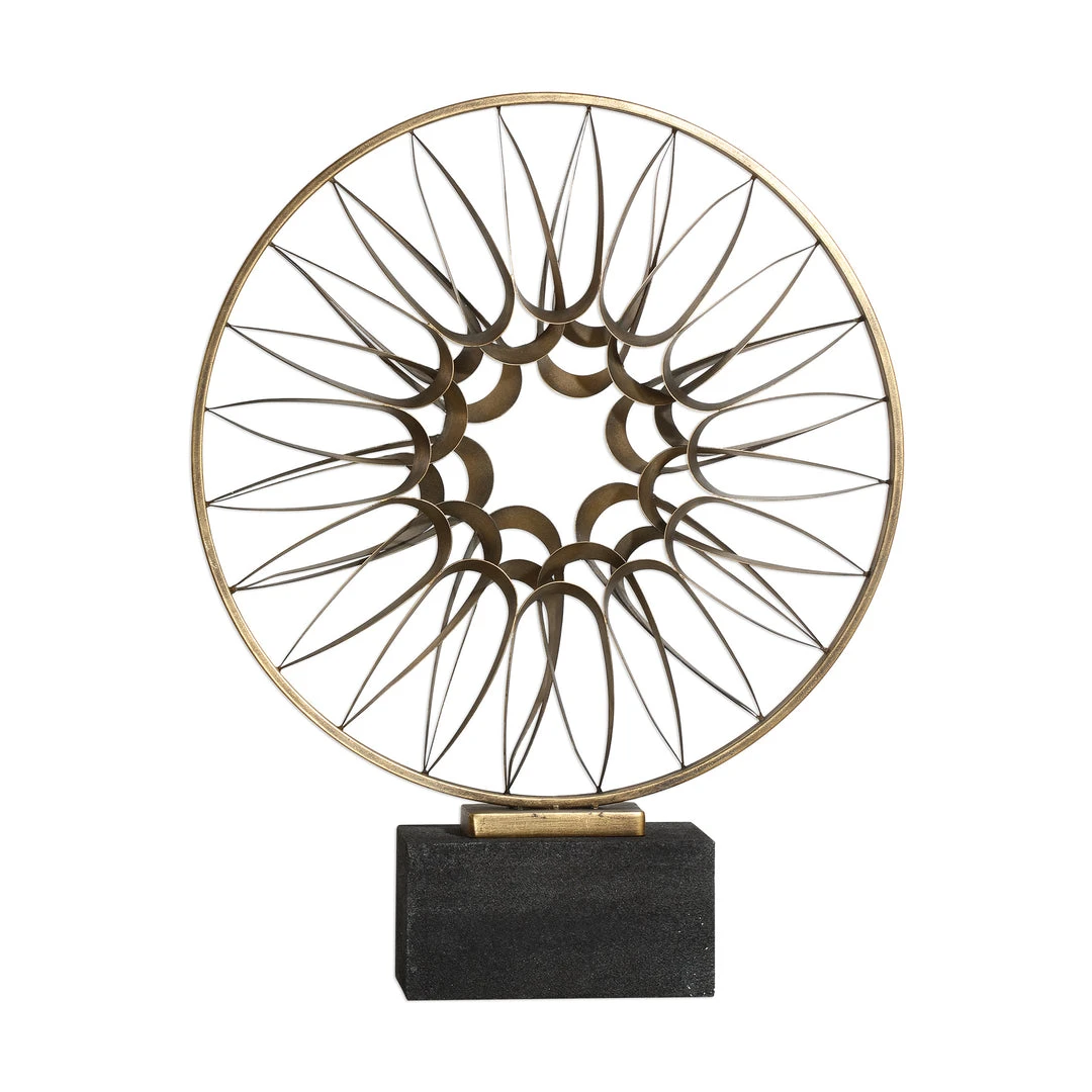 Antique Bronze Sculpture Set Atop A Textured Black Concrete Base.