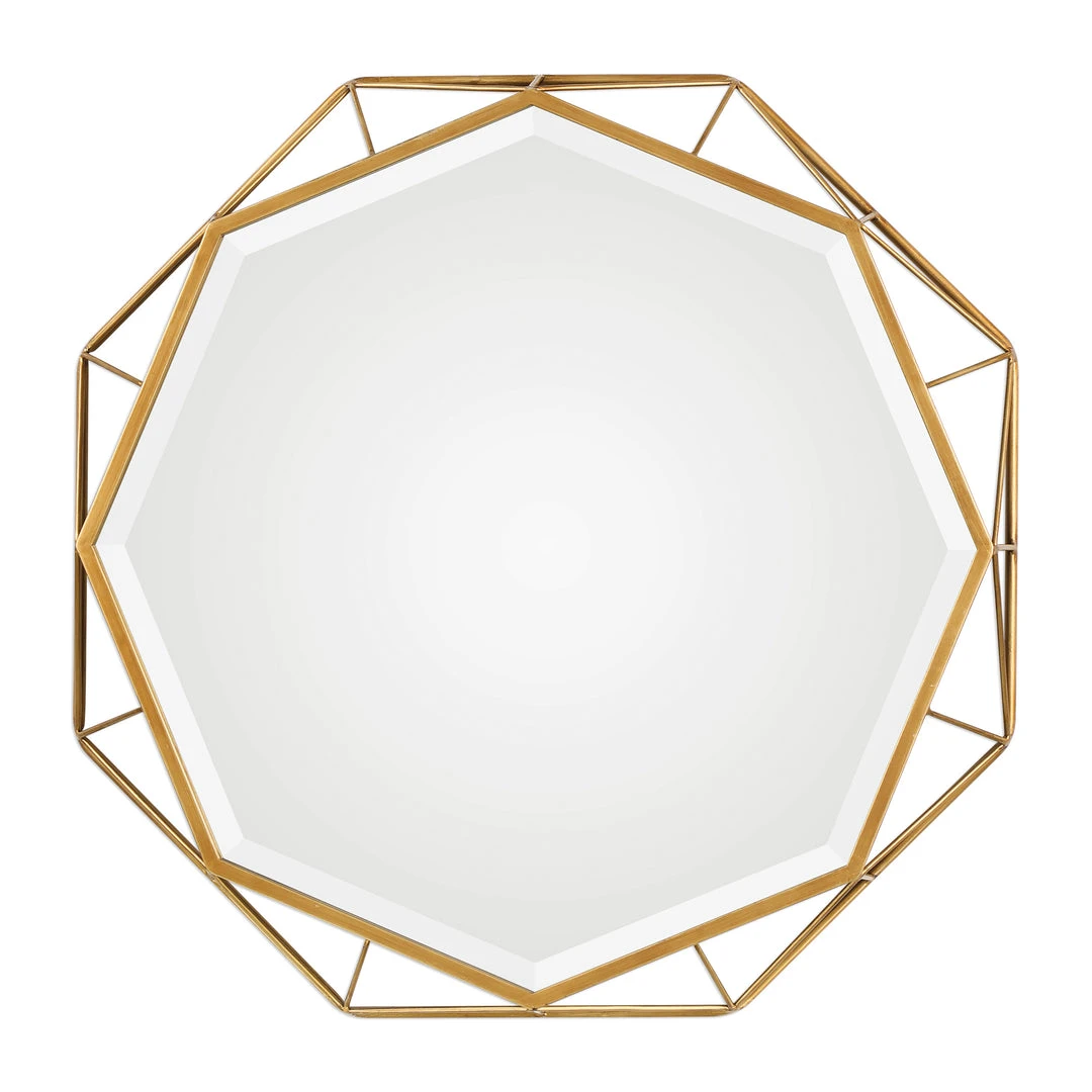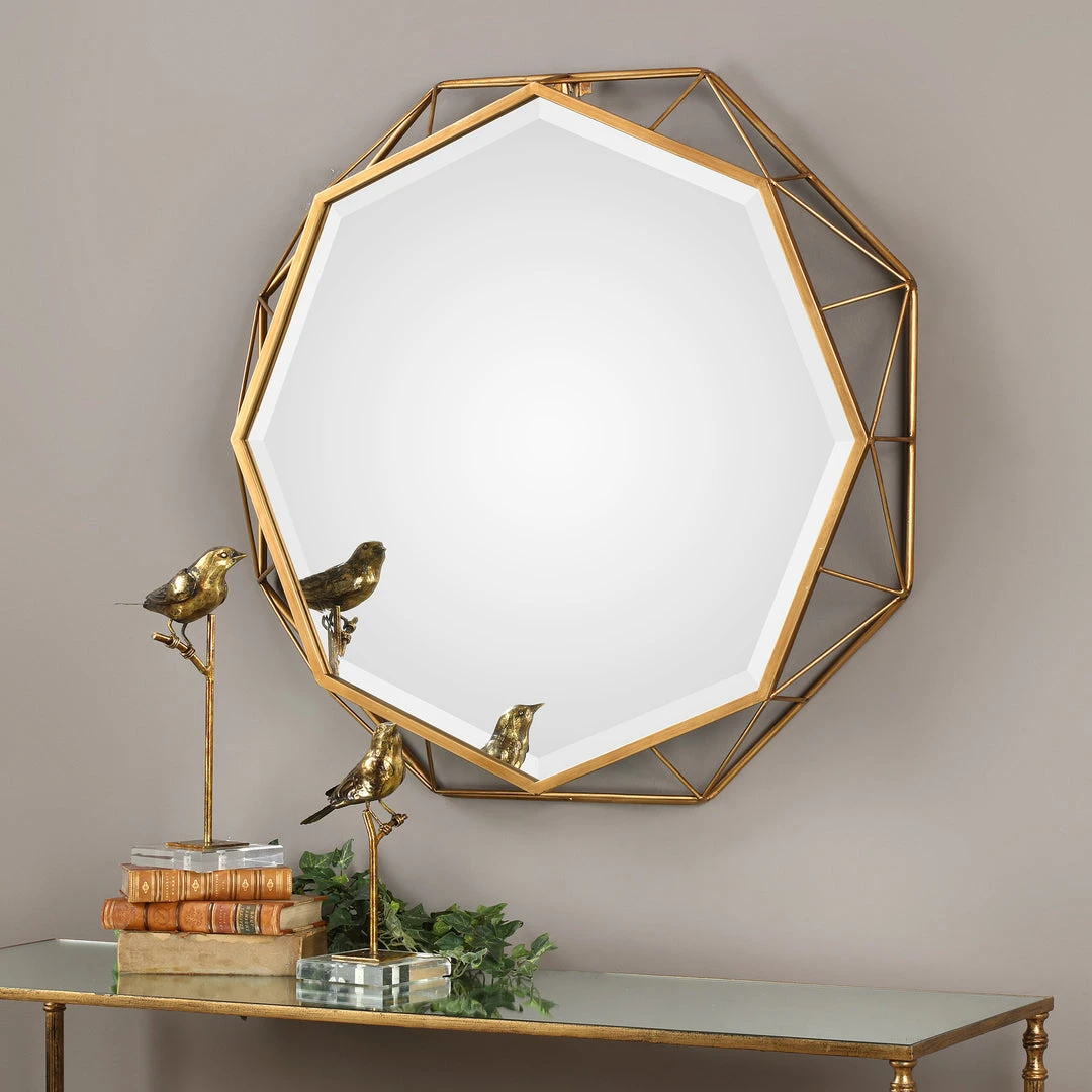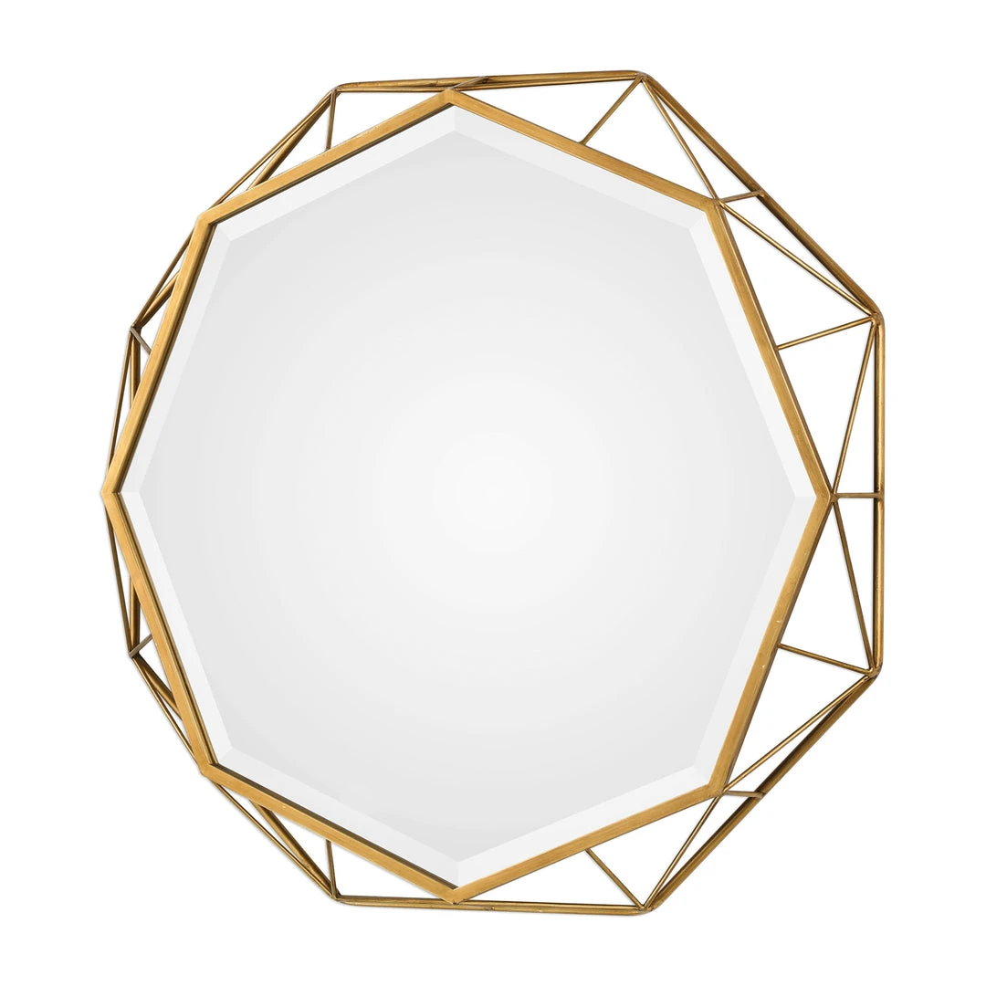 Hand Forged Iron Constructed Into A 3-dimensional Design Showcasing A Warm Gold Finish. Mirror Features A Generous 1 1/4″ Bevel.