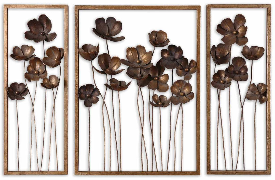 This Set Of Decorative Wall Art Is Made Of Hand Forged Metal Finished In Antiqued Gold Leaf With A Charcoal Gray Wash. Sizes: Sm-10x27x4, Lg-20x27x4