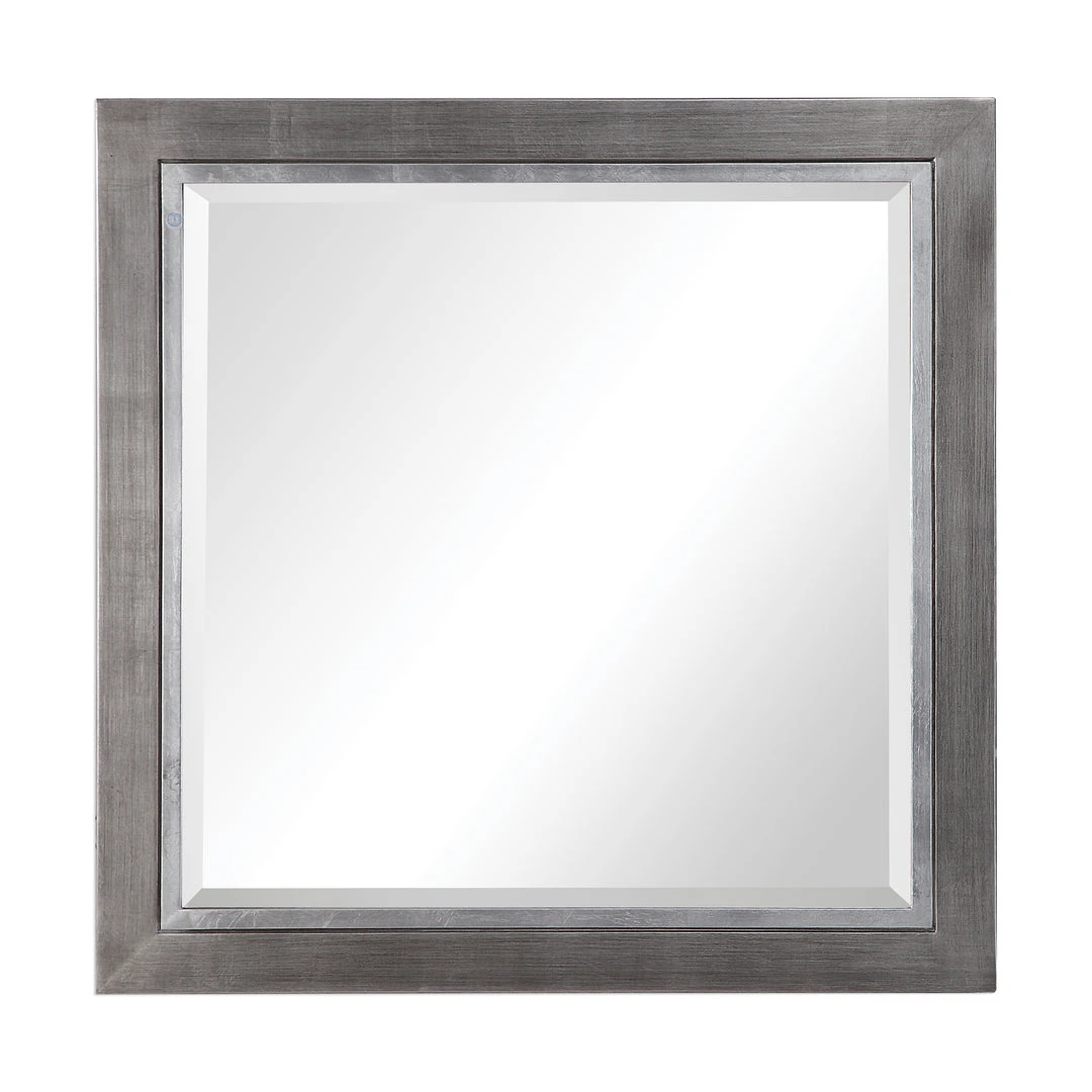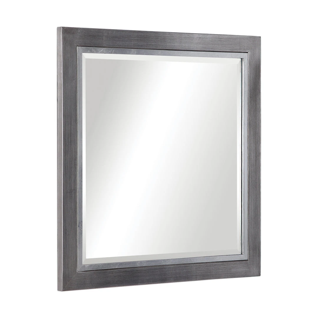 Constructed Of Solid Pine Wood, This Contemporary Mirror Has A Wrapped Tarnished Silver Finish Accented With A Metallic Silver Inner Edge. Each Mirror Is Encased By A 1 1/4″ Bevel.