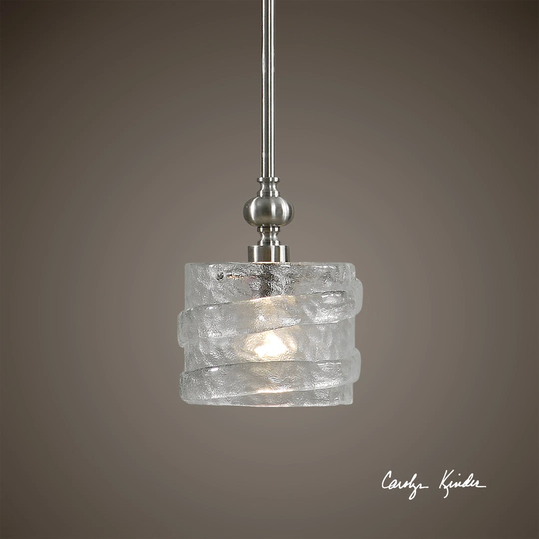 Heavily Seeded Art Glass In A Wrap-around Spiral Design Paired With Satin Nickel Details.