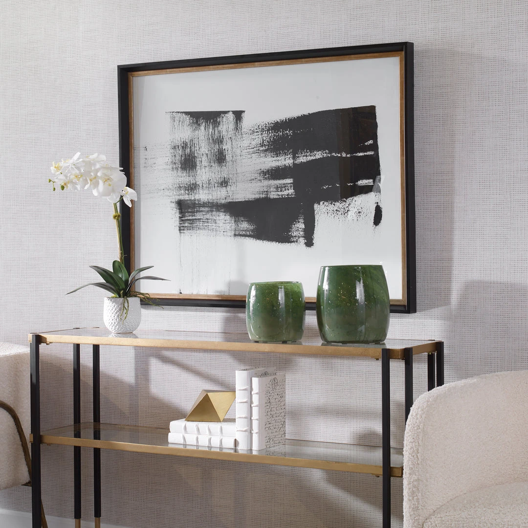 The Mystere Framed Artwork Exhibits A Stunning Black And White Composition Under Glass. The Print Is Accentuated By A Black Frame With An Aged Gold Inner Lip. May Be Hung Horizontal Or Vertical. Artwork By Christian Klingeler.