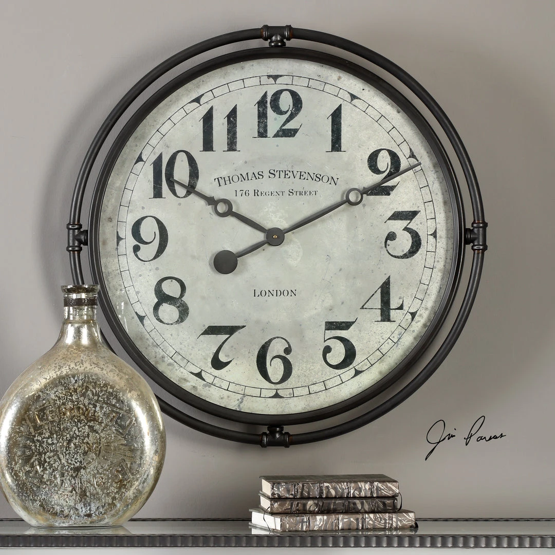 Smoke Gray Industrial Iron Frame With An Aged Ivory Clock Face Under Glass. Quartz Movement Ensures Accurate Timekeeping. Requires One “AA” Battery.