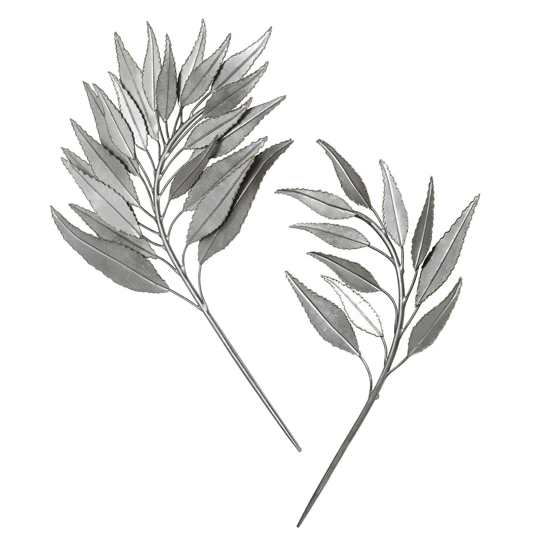 Hand Crafted From Solid Iron, These Metal Branches Feature Individually Cut Leaves With Crude Gold Tipped Edges, Finished In Lightly Distressed Silver Leaf.