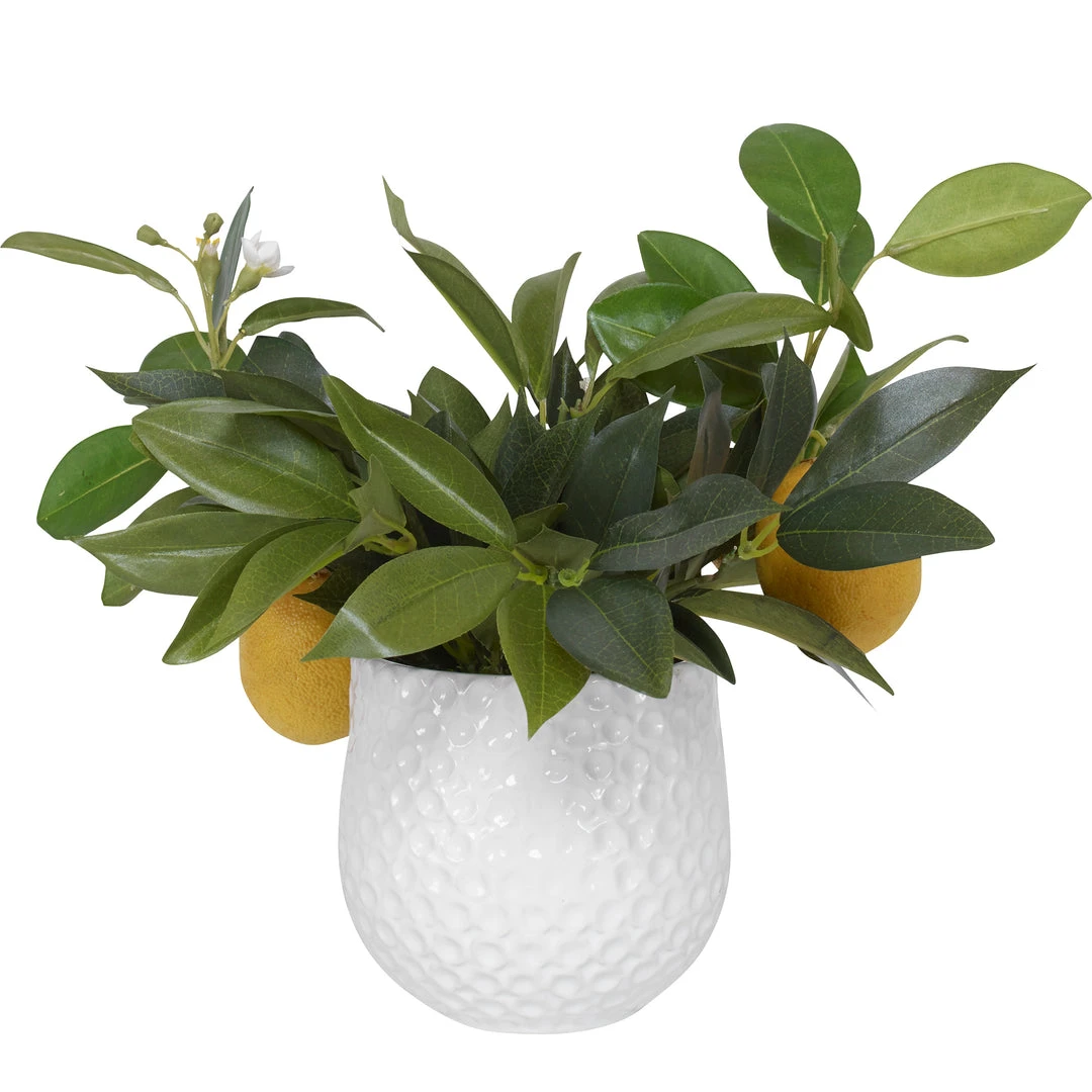 A Refreshing Bunch Of Budding Lemon Stems Is Accented By A Bed Of Naturally Preserved Moss, Placed In A Contemporary Dimpled White Ceramic Pot. Container Is 4.5″ W X 4.5″ H X 4.5″ D.