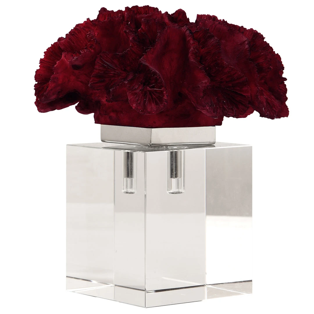 The Body Is Cast Directly From A Rare Red Coral Cluster, Seated On A Large Crystal Cube.