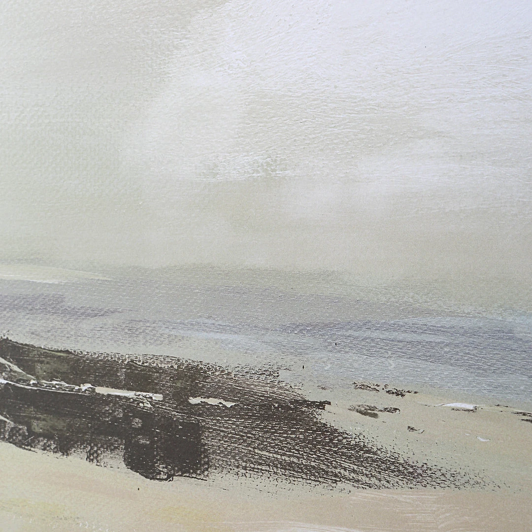 Understated And Serene, This Landscape Artwork Displays A Soft Color Palette That Beautifully Accents An Array Of Designs. The Print Is Accentuated By A White Linen Liner And A Pine Wood Frame Finished In A Dark Espresso Stain With Rich Wood Grain Texture. Artwork By PI Studio.