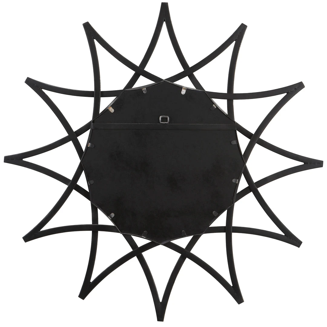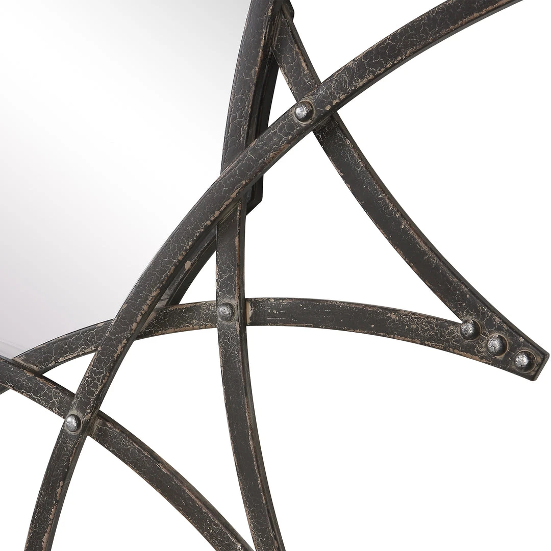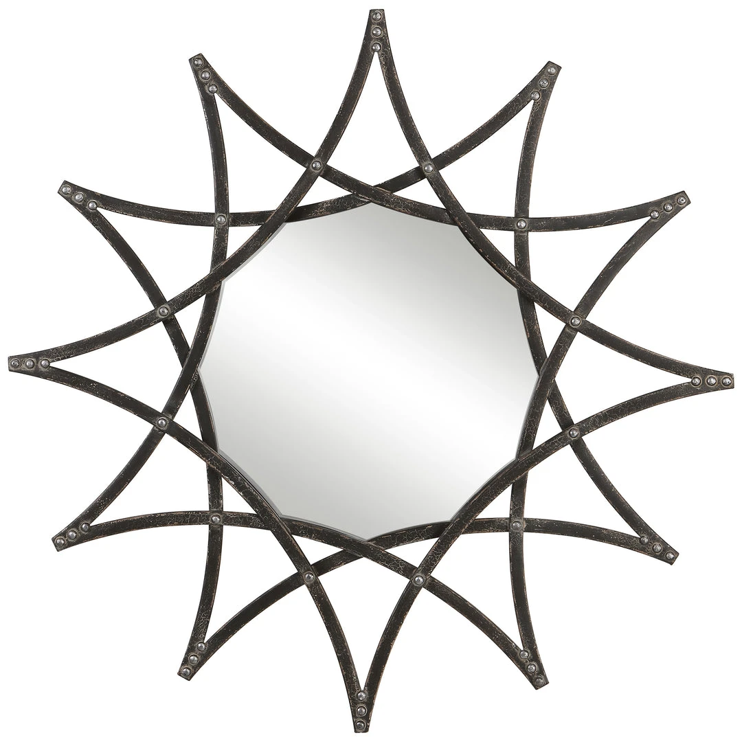 Handcrafted From Forged Iron, This Mirror Showcases A Star-shaped Frame Finished In An Aged Crackled Charcoal With A Light Gray Glaze And Antiqued Silver Rivet Like Accents.
