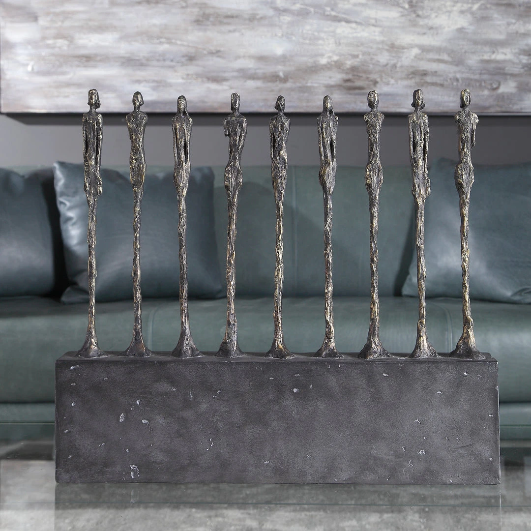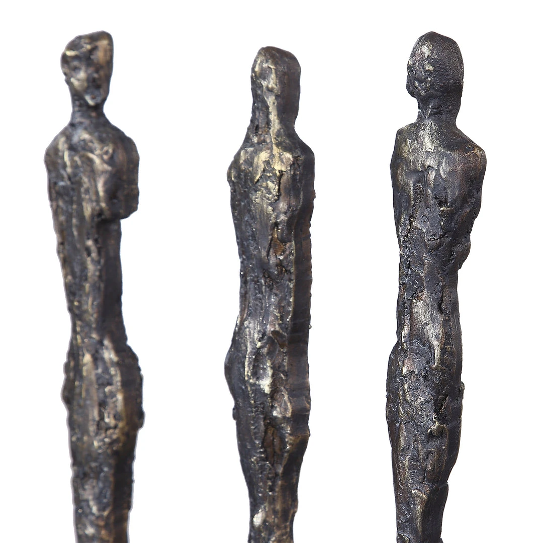 Textured Figurines With An Appearance Of Hand Molding Finished In A Heavily Aged Gold Displayed On A Porous Aged Black Base.