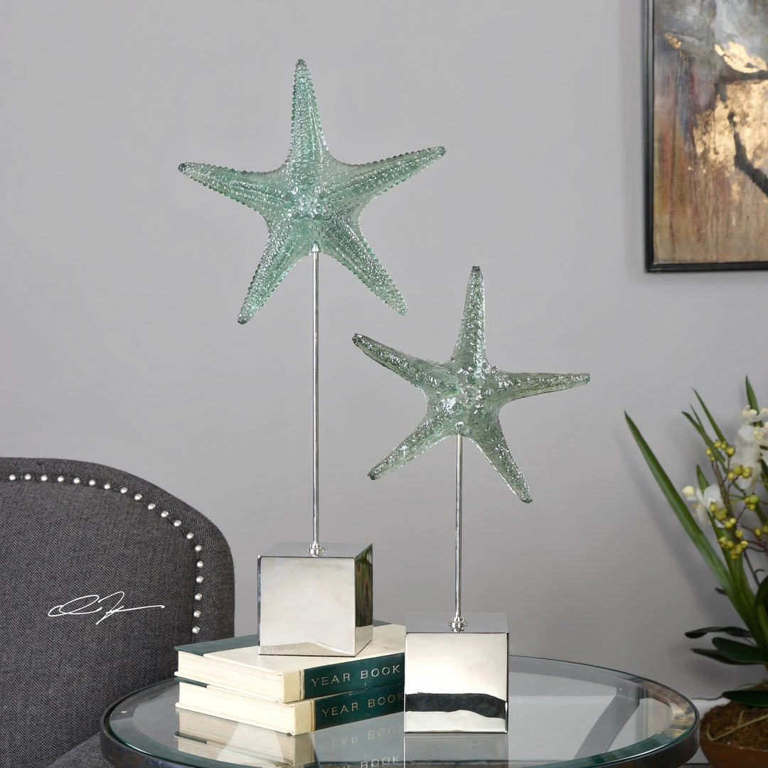 Realistic Starfish Replicas Feature A Pale, Marine Green Finish And Sit Atop Tarnished Silver Stands. Sizes: Sm-10x19x4, Lg-11x24x4