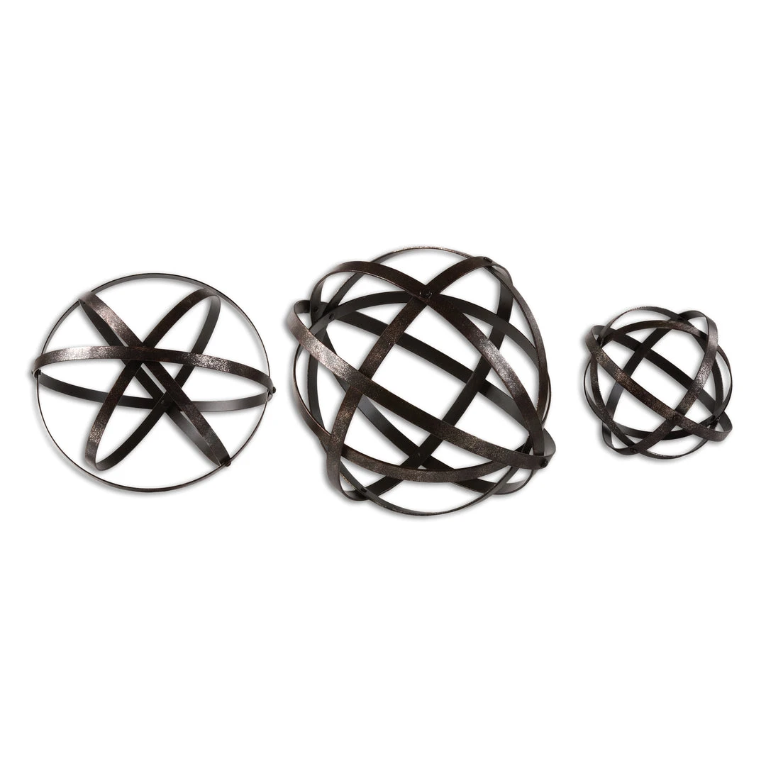 Dark, Aged Bronze Metal Spheres With Silver Undertones. Sizes: Sm-7x7x7, Med-9x9x9, Lg-12x12x12
