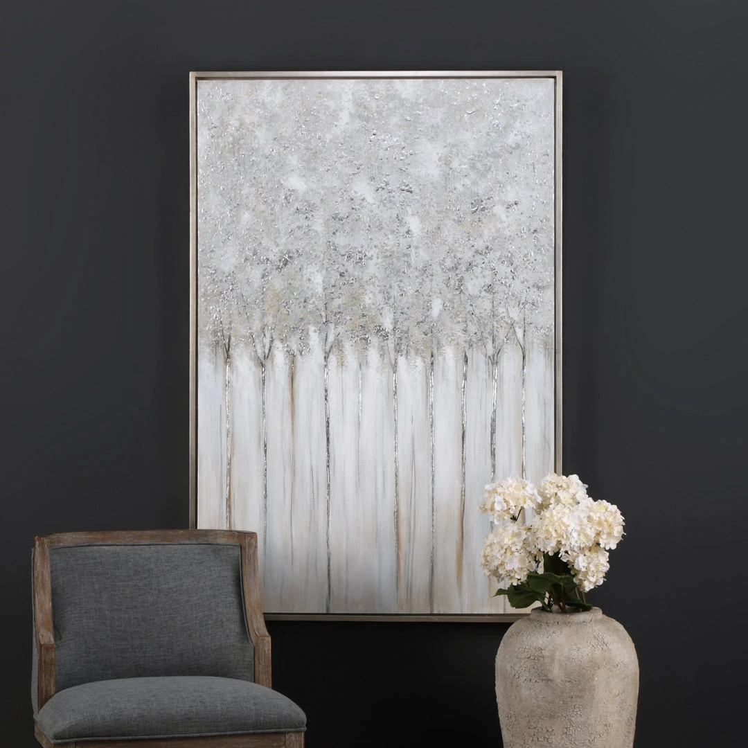 Complete A Transitional Design With This Refined, Hand Painted Landscape On Canvas. This Heavily Textured Artwork Features A Minimalist Landscape Design With Shades Of Gray, Charcoal, And Beige. A Warm, Champagne Silver Gallery Frame Encases Each Canvas, Which Has Been Stretched And Attached To A Wooden Frame. Due To The Handcrafted Nature Of This Artwork, Each Piece May Have Subtle Differences.