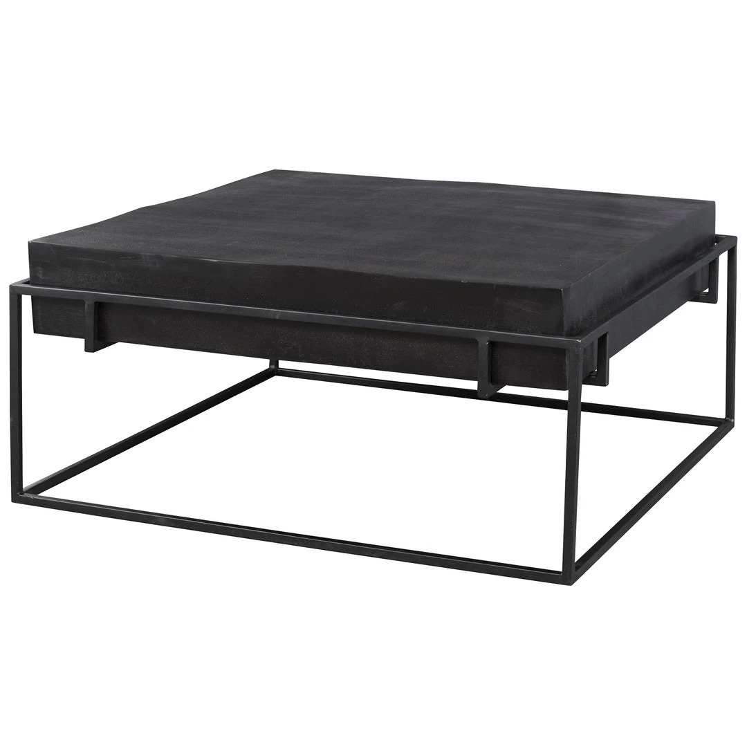 With Modern Minimalist Styling, This Coffee Table Features A Thick Cast Aluminum Top With Natural Texturing Finished In A Dark Oxidized Black, Resting In A Coordinating Aged Black Iron Base.