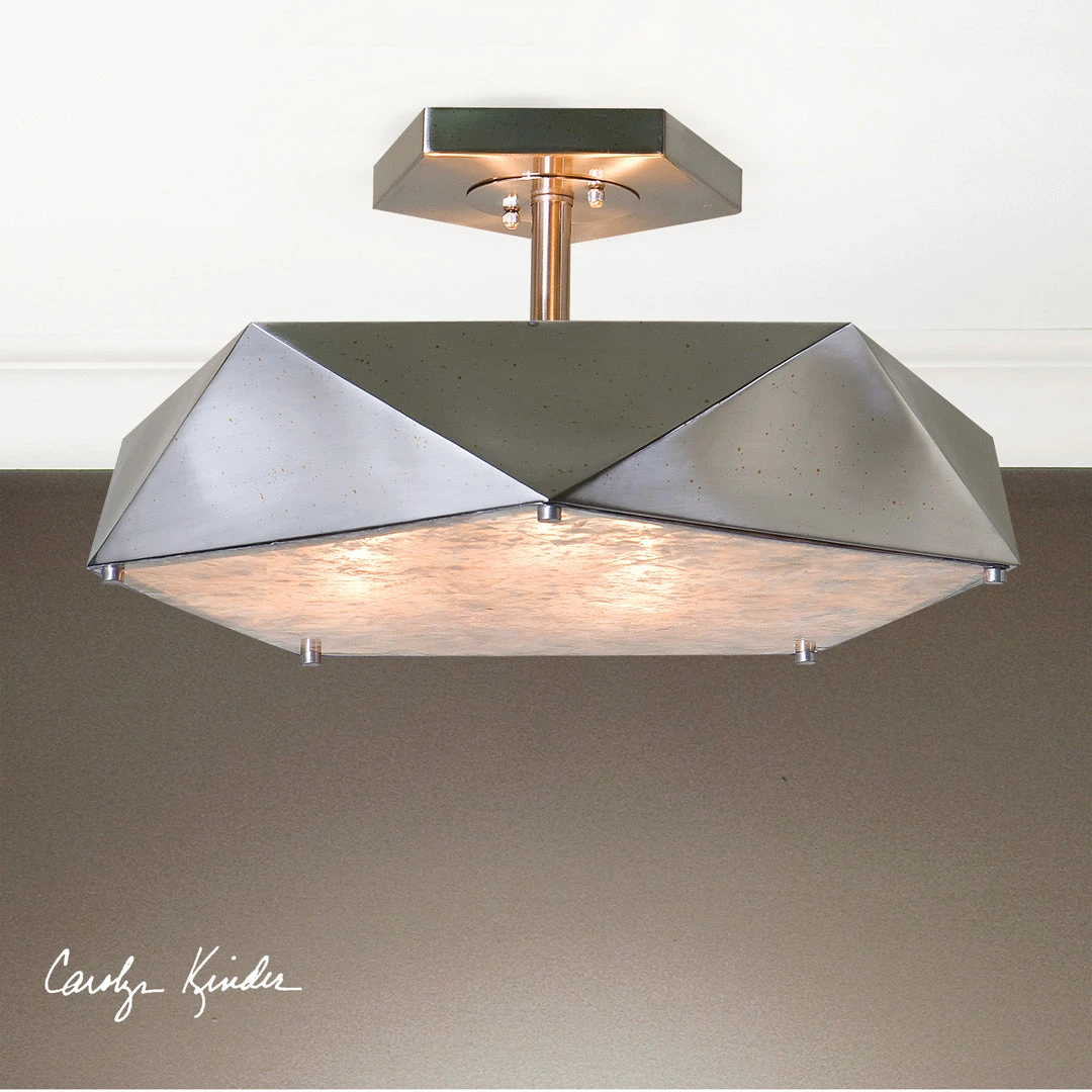 Distressed Antique Nickel Finish With A Champagne Mica Diffuser.