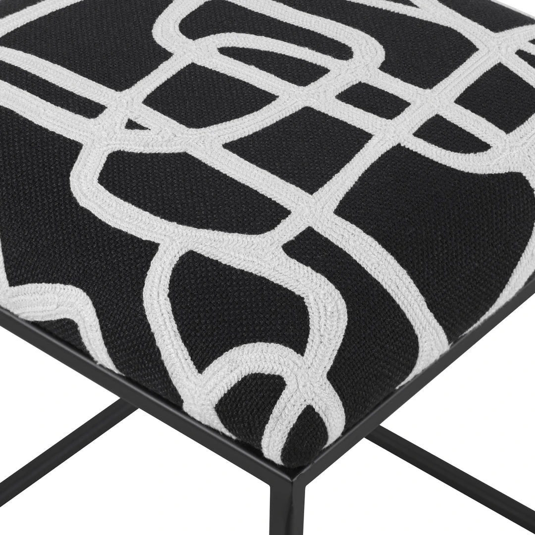 Sophisticated With A Touch Of Whimsy, This Accent Stool Features A Cushioned Seat Upholstered In A Contemporary Black And White Embroidered Fabric, Atop A Matte Black Iron Base. Doubles As Added Seating Or A Footrest.