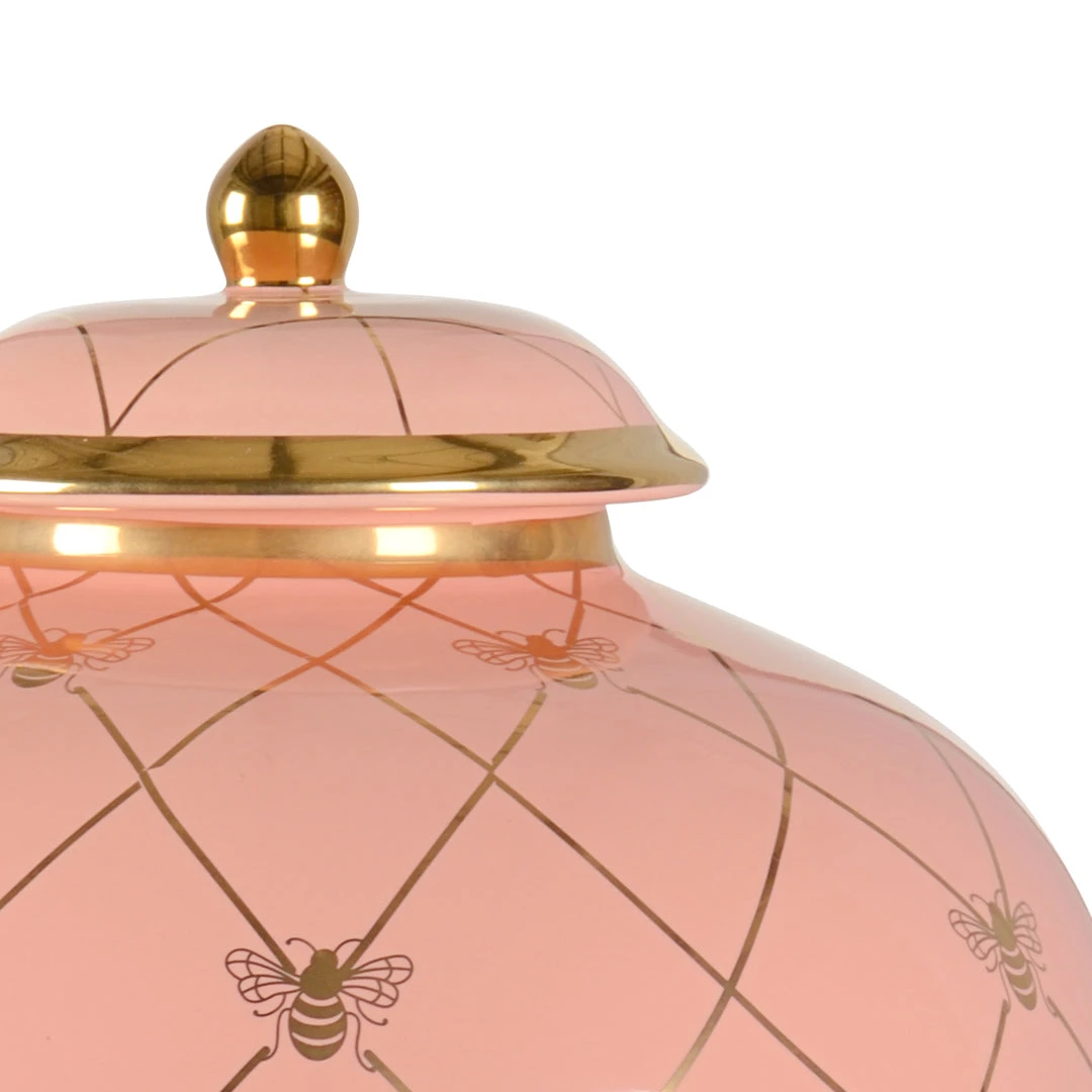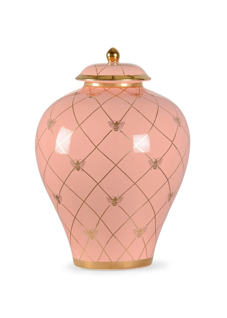A Countertop Version Of A Ginger Jar Offering A Vibrant Color Palette With Metallic Satin Gold Detailing. Designed By Shayla Copas.