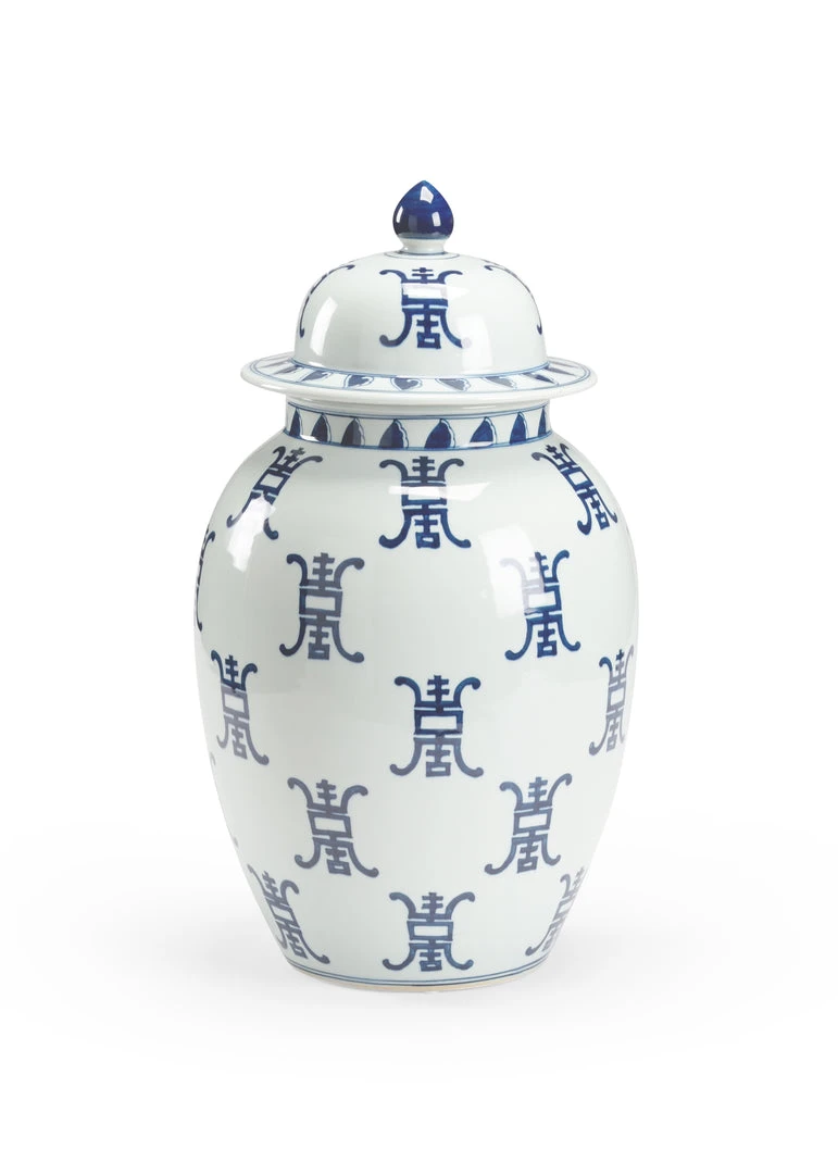 White Glazed Ceramic With Hand-Painted Blue Design.