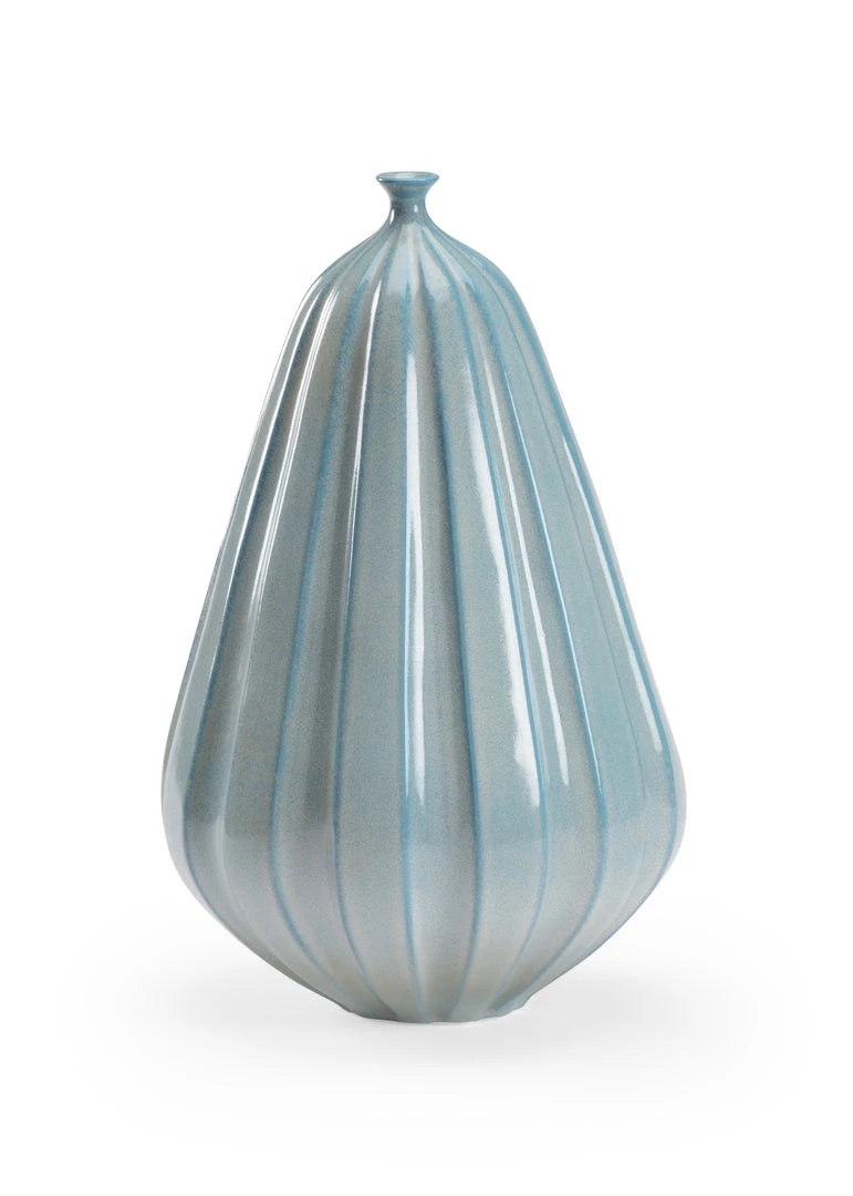 A Pinched Neck & Fluted Texture Create The Sleek Silhouette Of This 14″ Cyan Glazed Porcelain Vase. This Eye Catching Design Can Be Used As A Stand Alone Piece Or With Our Small Mina Vase To Create An Enduring Impression On Your Guests.