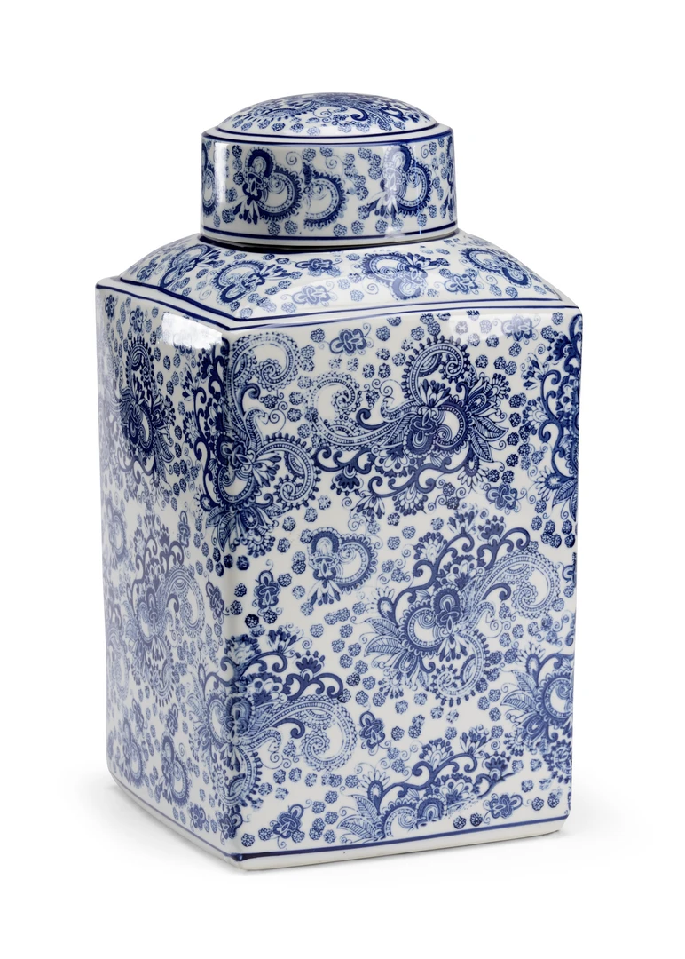 Classic Square Blue, White Porcelain Canister With Transfer Pattern