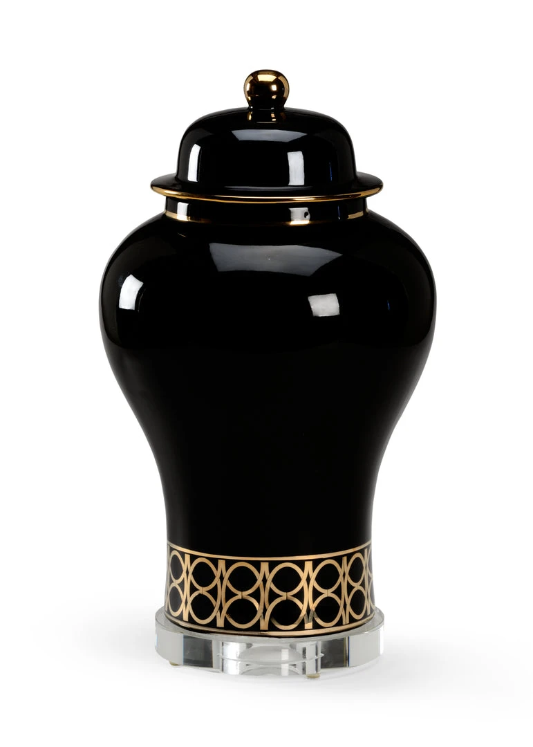 The Graceful Curves And Metallic Gold Trim Make Washington Scroll Urn A Classic Accent For Any Decorative Style. Featuring A Sleek Black Glazed Ceramic With Metallic Gold Design, This 18″ Urn With Removable Top Is Mounted On A Clear Acrylic Base. May Be Used As A Stand Alone Or Combined With Other Accents For An Elegant Focal Point In Your Room. Also Pair With Our 20.5″ Washington Scroll Urn. (Vase Opening: 5.5″)