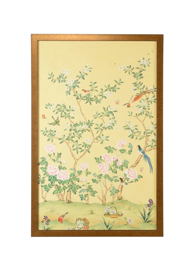Watercolor On Silk, Scratched Gold Frame With Glass. Hand Painted.