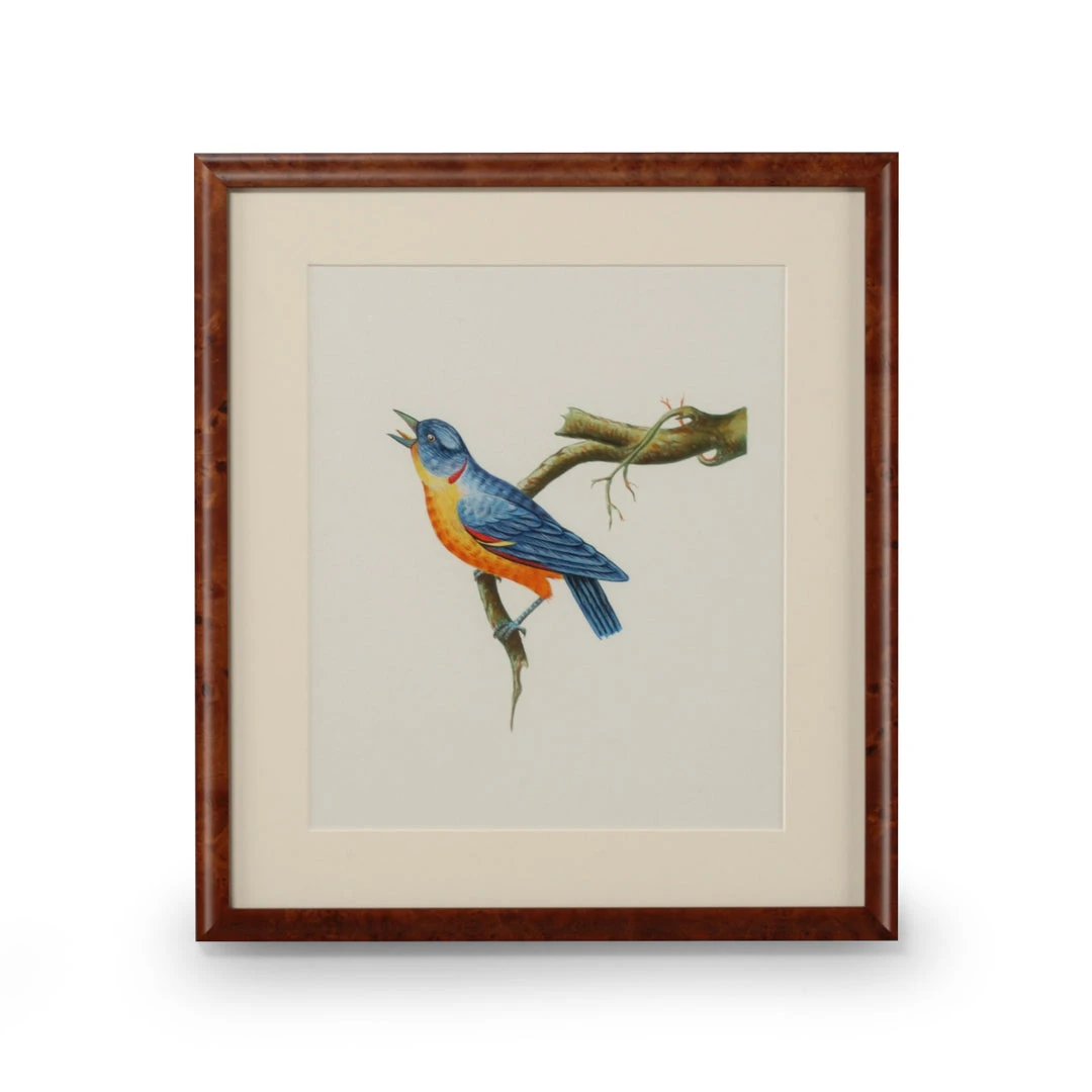 Hand Painted Watercolor, Walnut Burl Frame With Glass, Single Mat, Lisa Kahn Collection