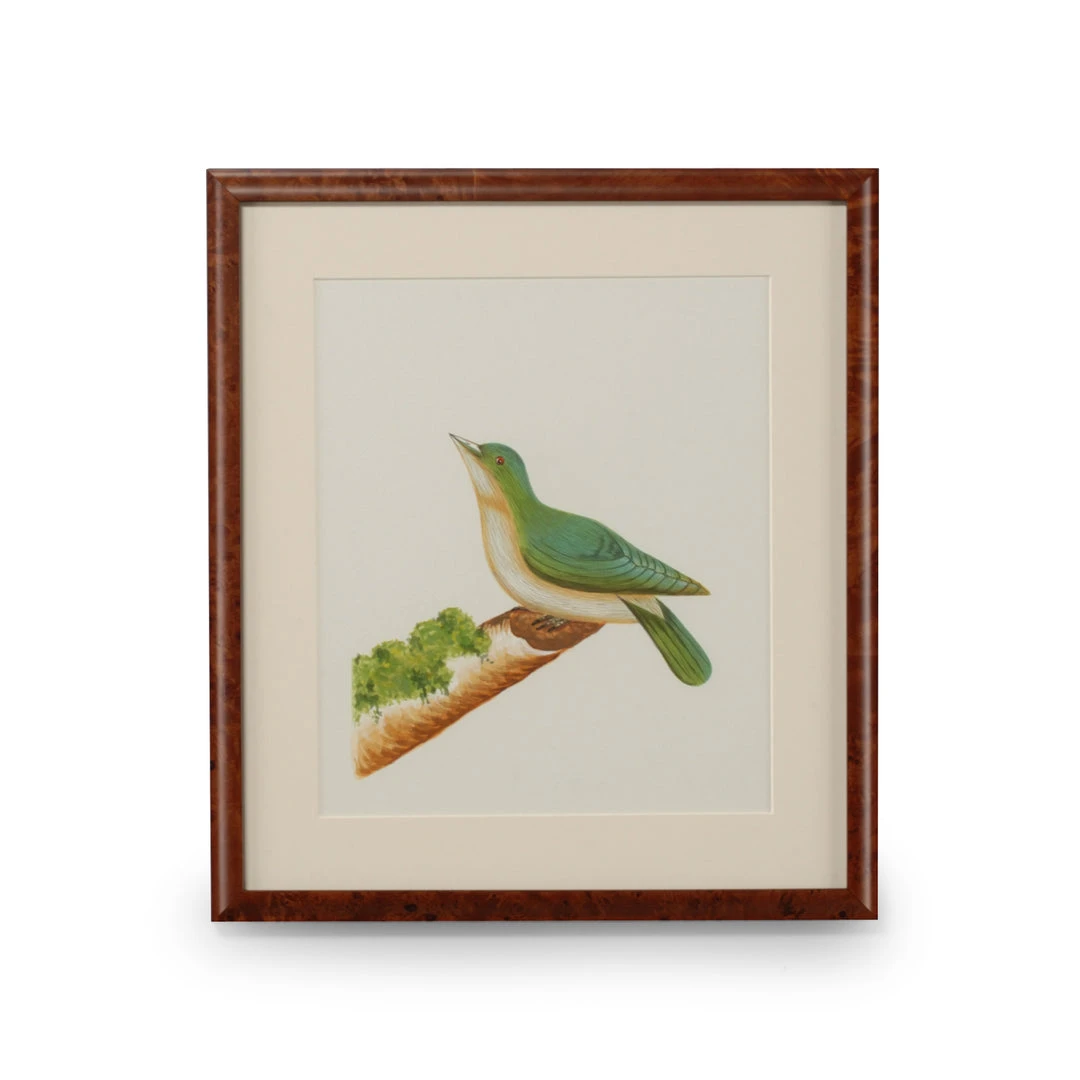 Hand Painted Watercolor, Walnut Burl Frame With Glass, Single Mat, Lisa Kahn Collection.